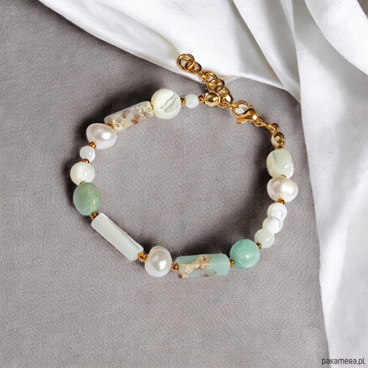 urocza, delikatna bransoletka w odcieniach biel-krem-mięta