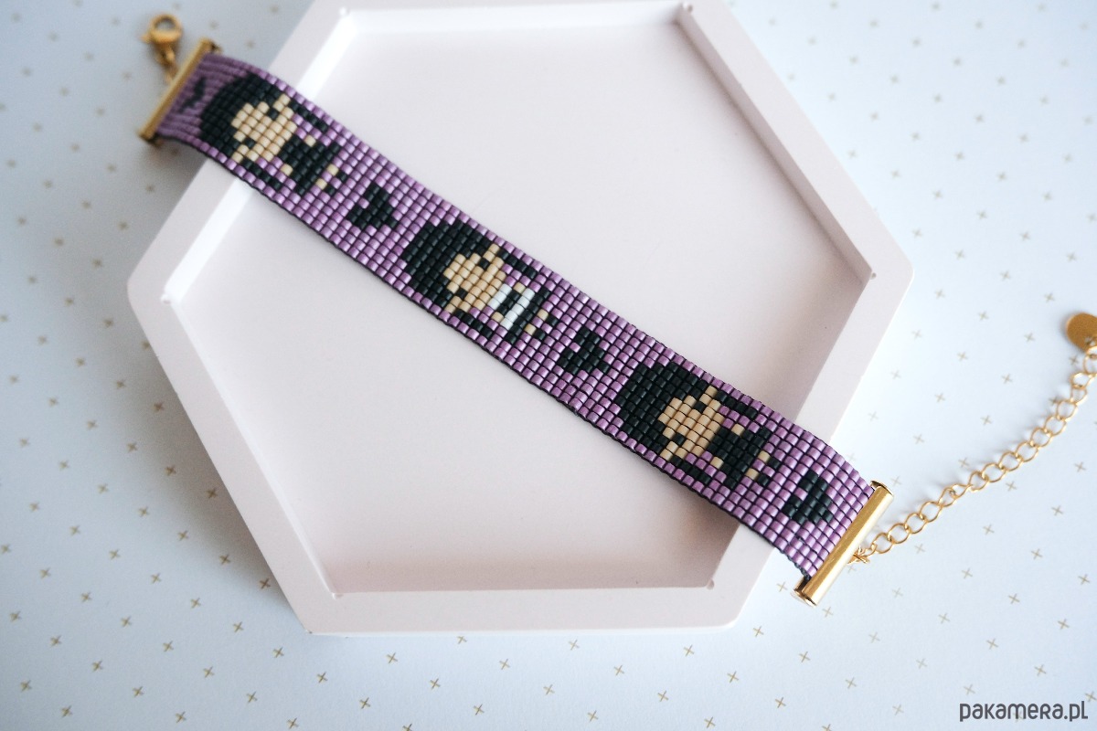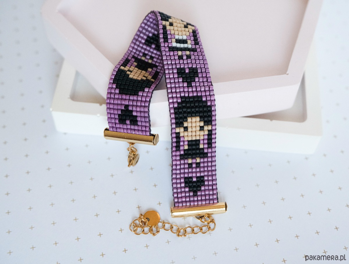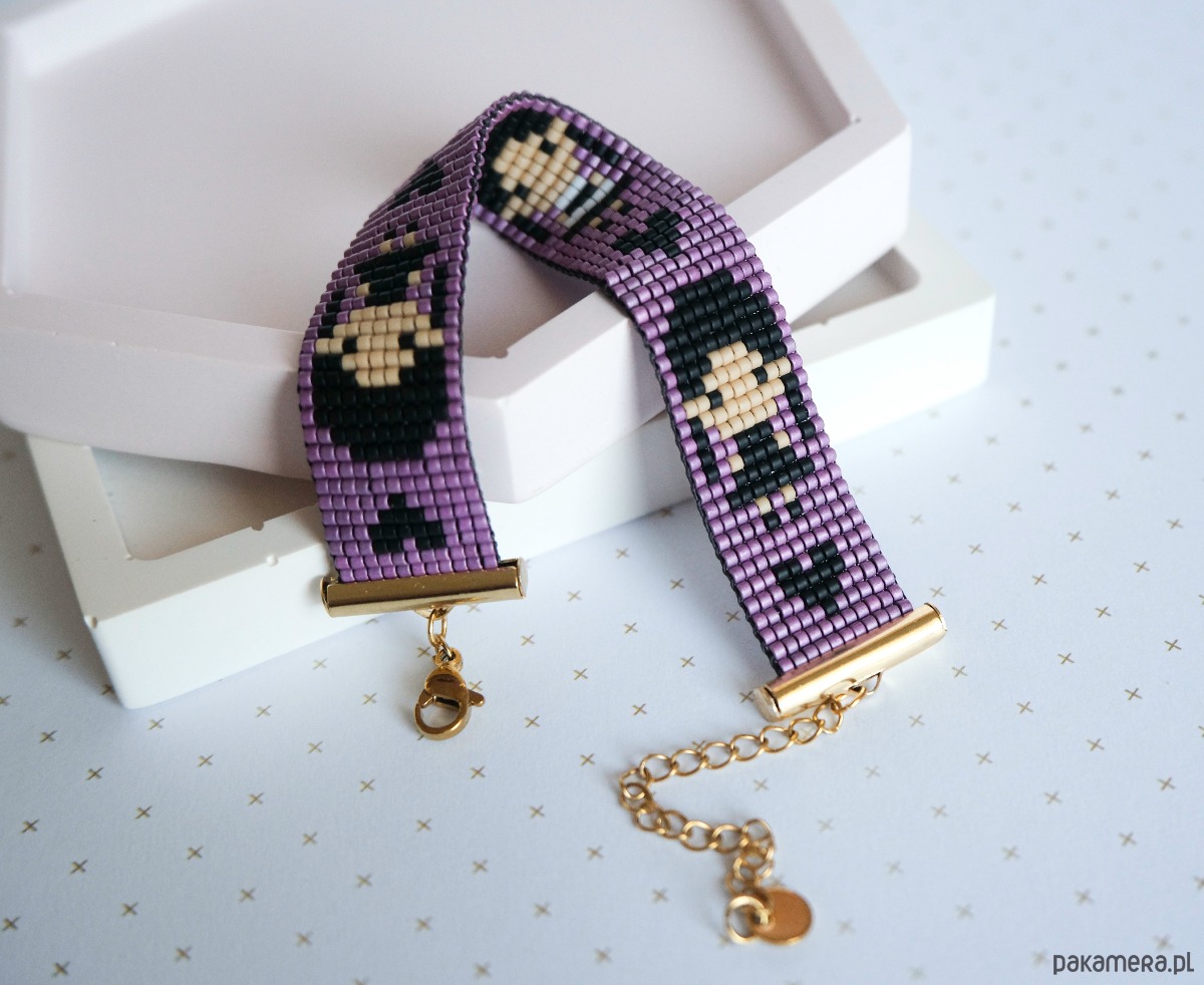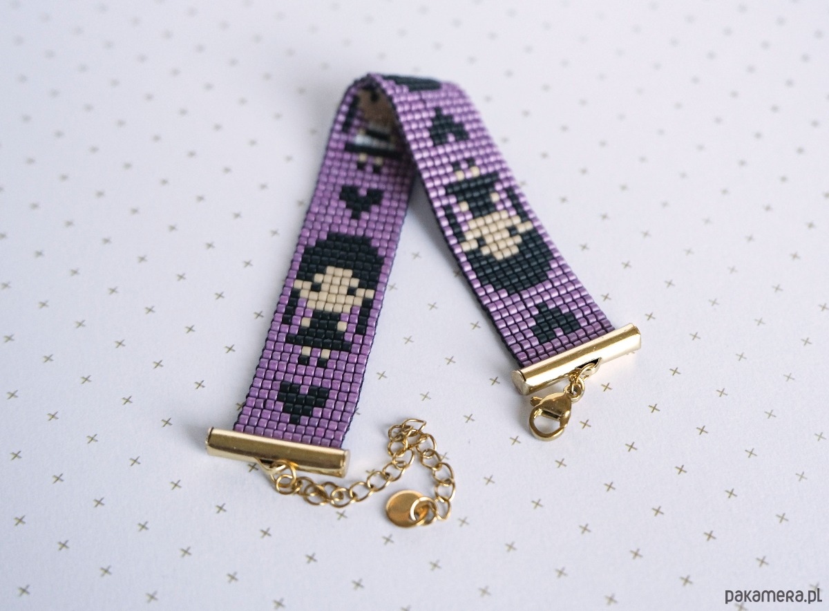 Ręcznie pleciona bransoletka Wednesday z koralików Miyuki – elegancja w wyjątkowo mrocznym, halloweenowym stylu.