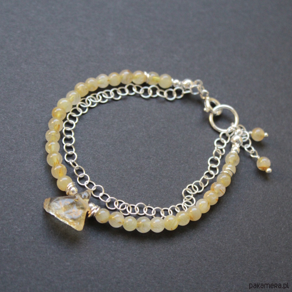 Przepiękne bransoletka wykonana została ze srebra próby 925 oraz kuleczek kwarcu z rutylem wielkości 0,4 cm.