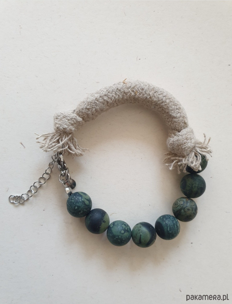 - Materiał: kamień naturalny, sznurek, stal chirurgiczna