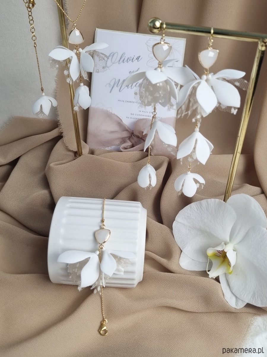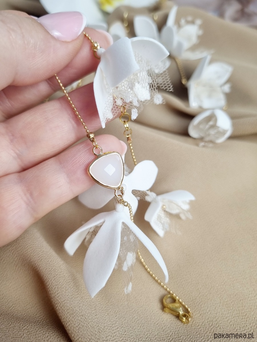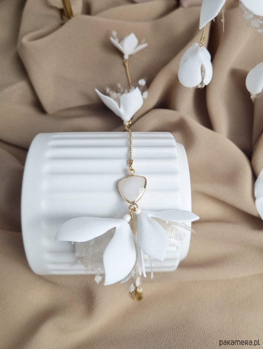 Idealne uzupełnienie stylizacji ślubnej, doskonałe w połączeniu z kolczykami z tej samej kolekcji, dostępne osobno w zakupie.