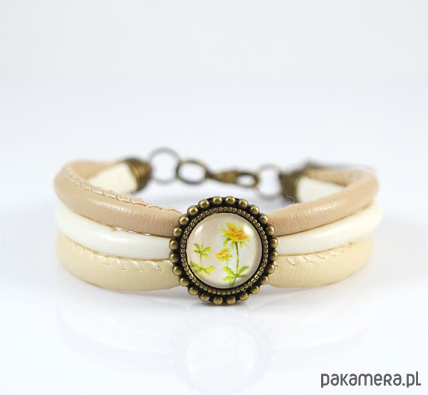 Bransoletka - Wiesiołek - rzemienie, beżowa