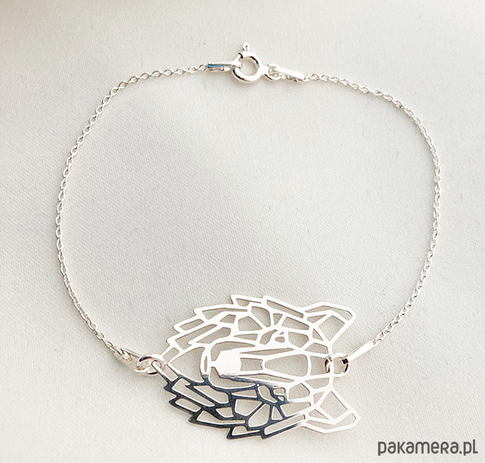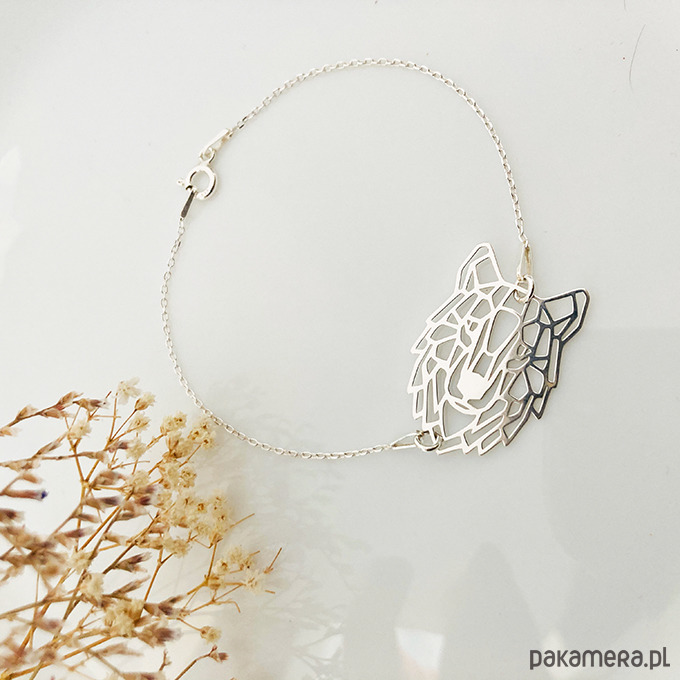 Wyjątkowa bransoletka z geometryczną zawieszką w kształcie stylizowanego wilka ma unikalny geometryczny kształt. Idealna do codziennego użytku lub na specjalne okazje.