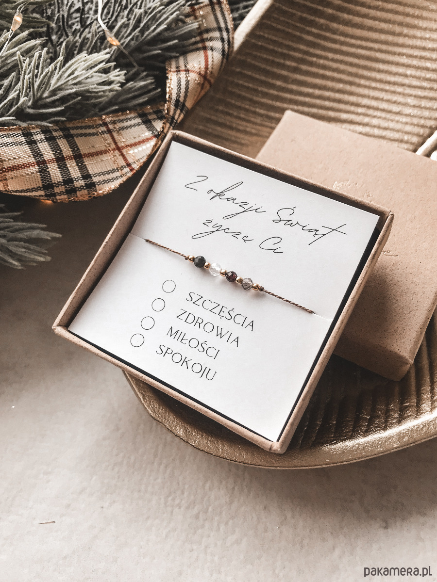 Do bransoletki dołączona jest karteczka z życzeniami świątecznymi widocznymi na zdjęciu.