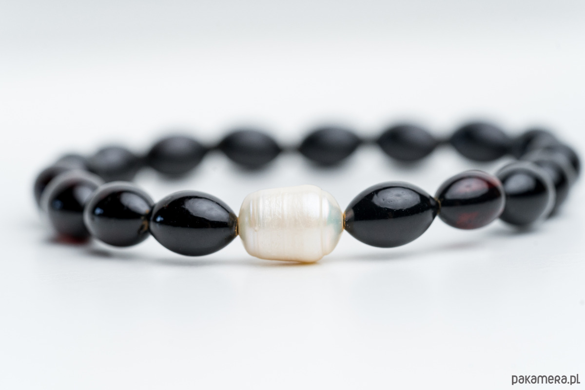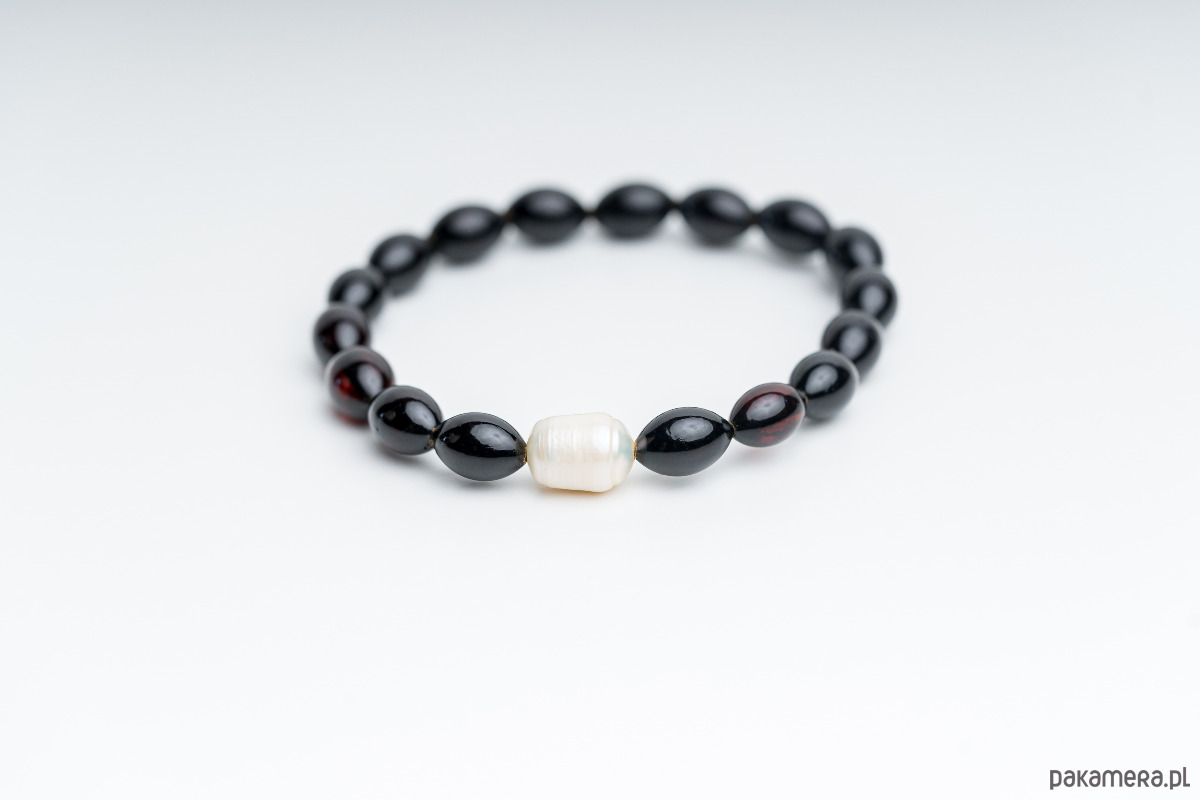 Bransoletka wiśniowy bursztyn i perła