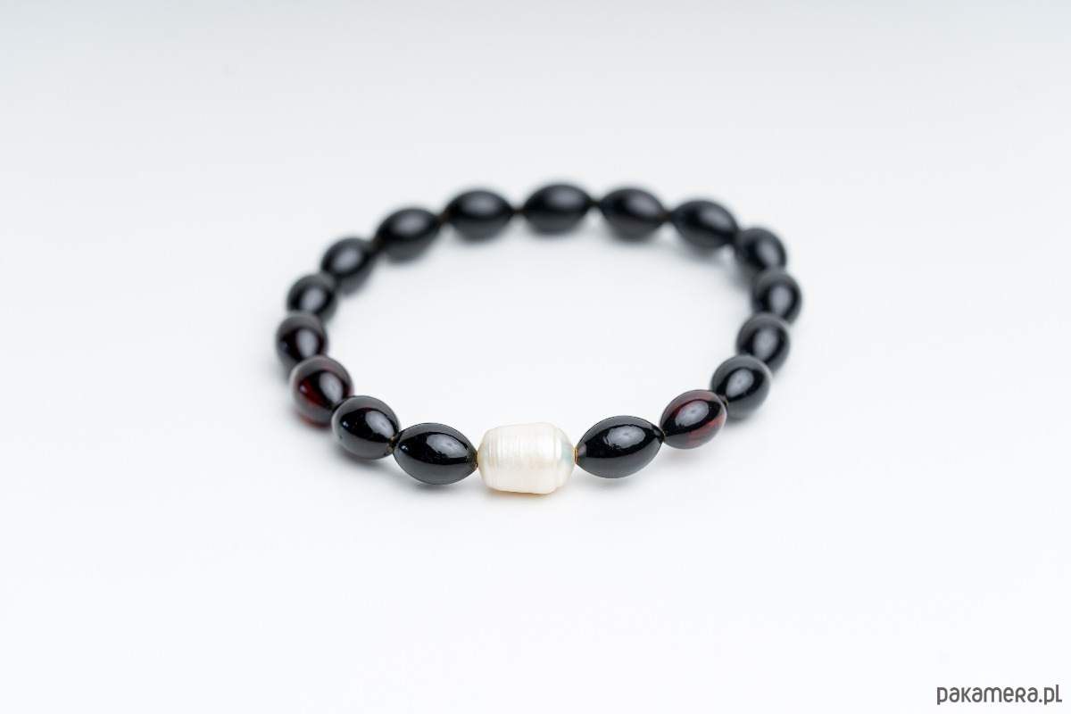 Materiały: bursztyn, naturalna perła hodowlana