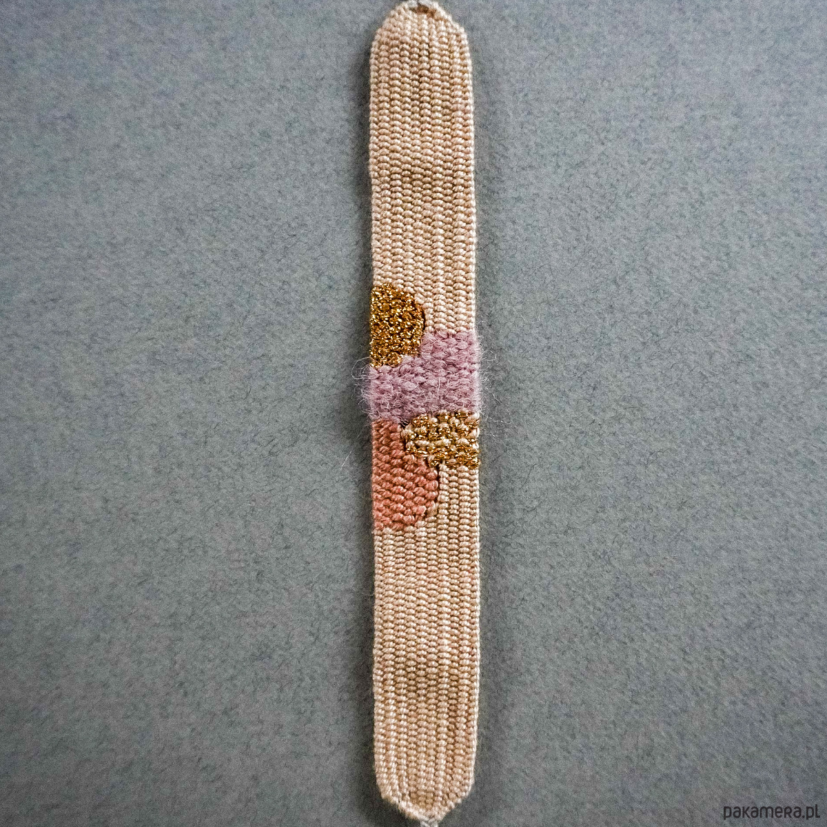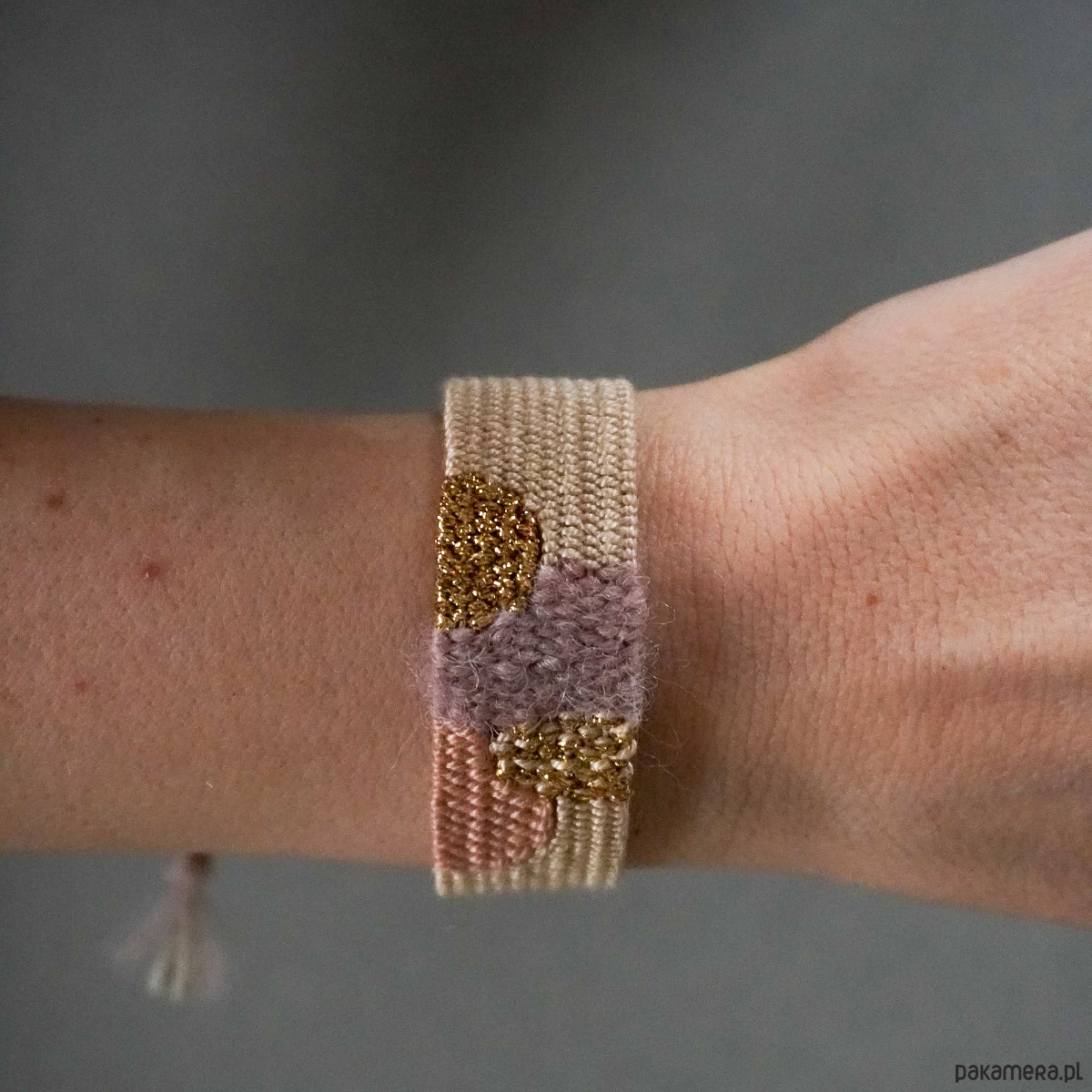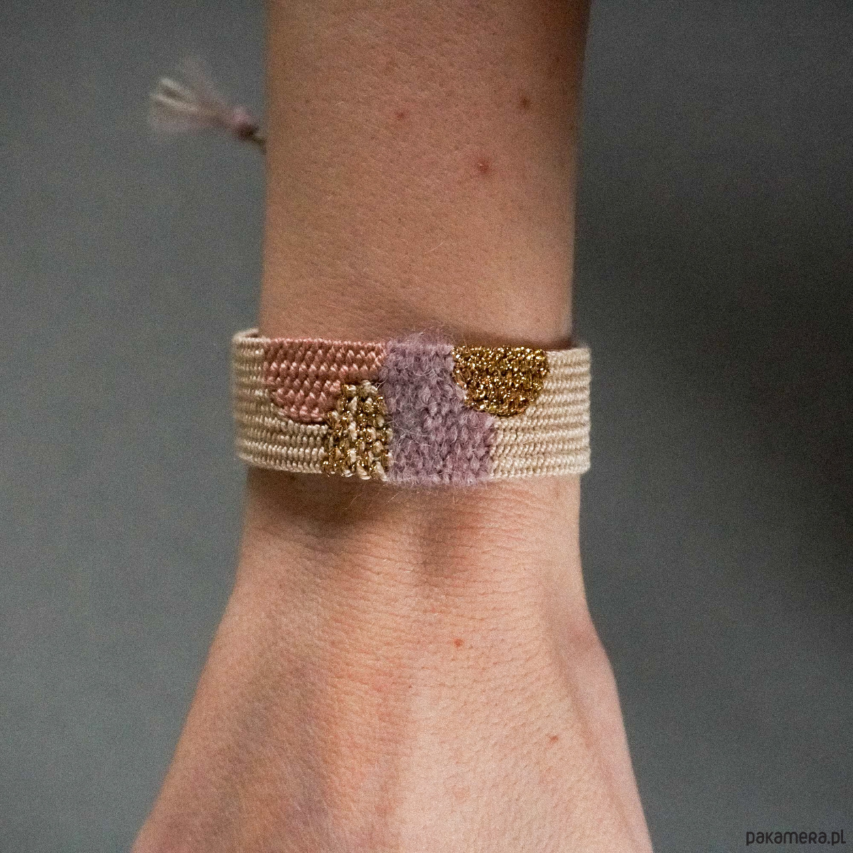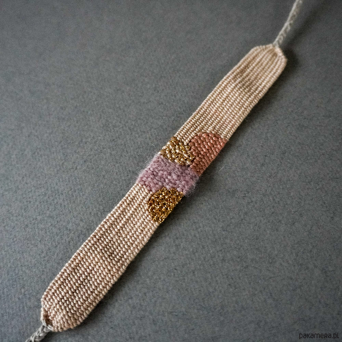 Bransoletka wykonana na krośnie, wiązana na supełek