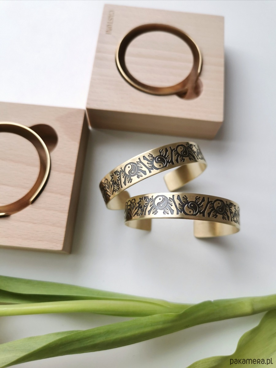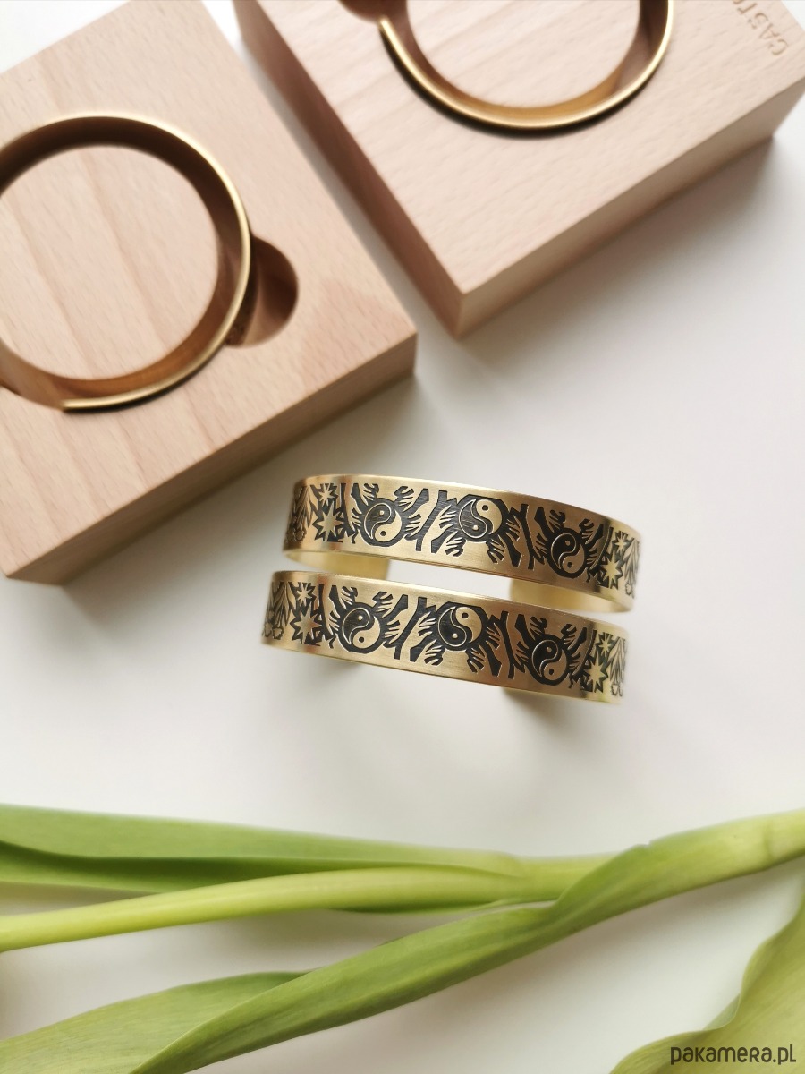Nowa bransoletka ma kolor jasno złoty, wraz z upływem czasu mosiądz nabiera szlachetnej barwy starego złota.