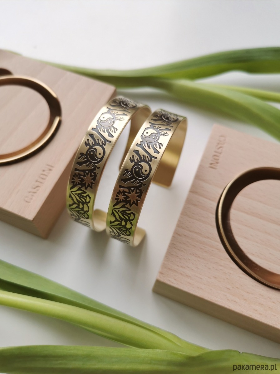 Nowa bransoletka ma kolor jasno złoty, wraz z upływem czasu mosiądz nabiera szlachetnej barwy starego złota.