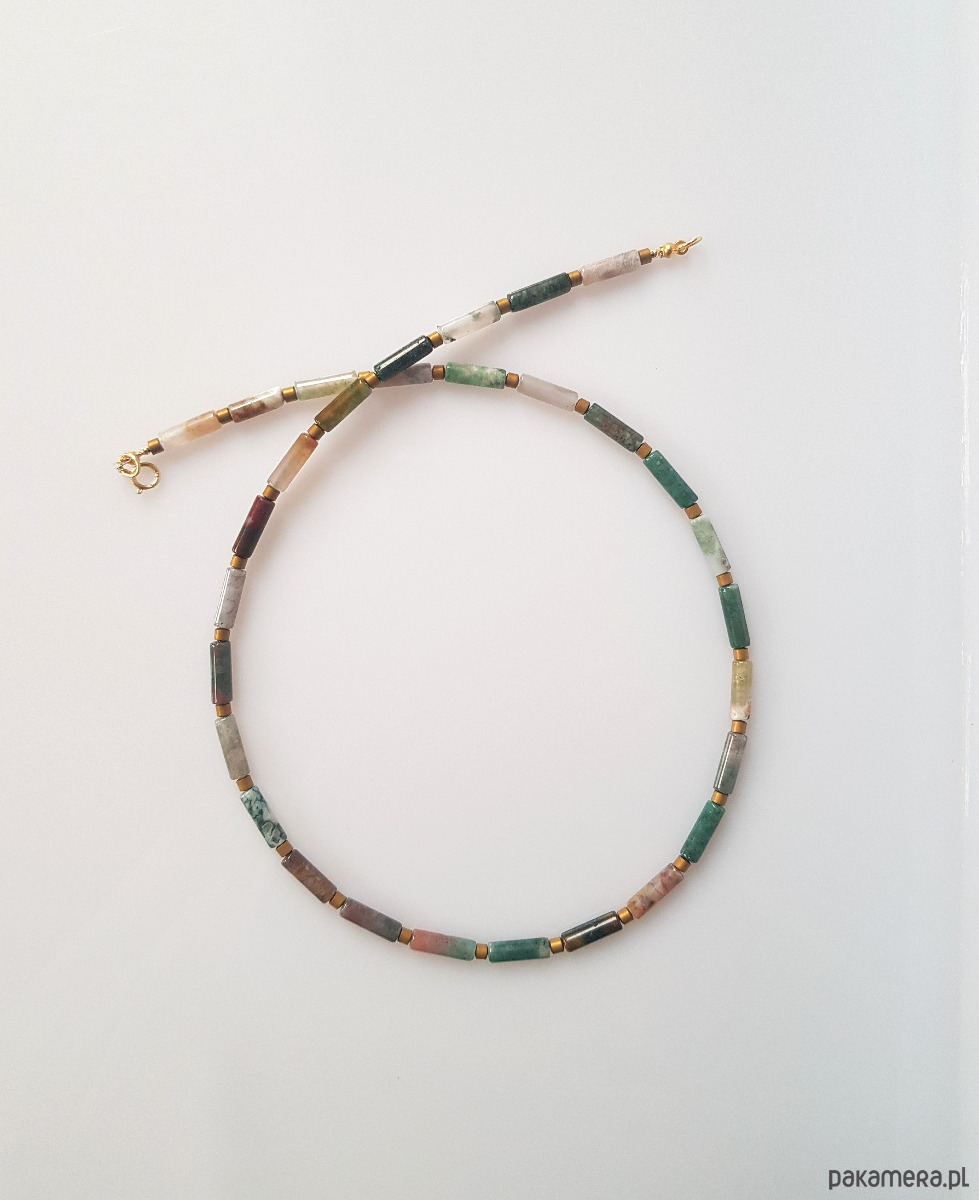 Wałeczki hematytu w kolorze starego złota, plasterki złotego hematytu i patyczki agatu indyjskiego.