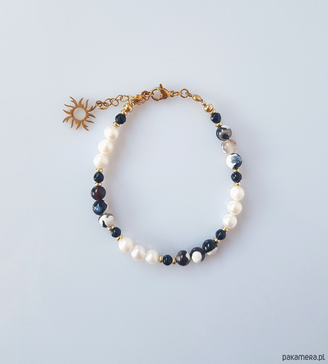 Elegancka, klasyczna bransoletka Słońce w perłach.