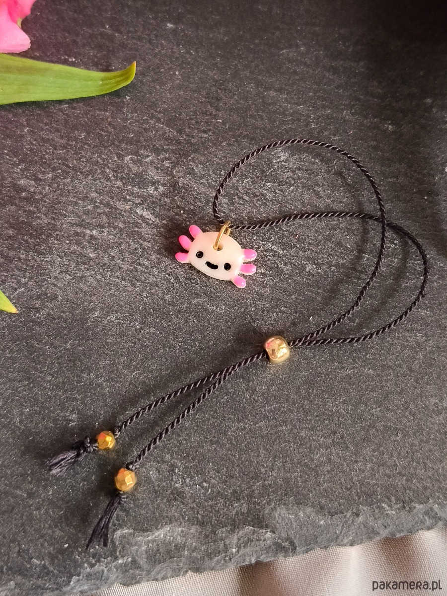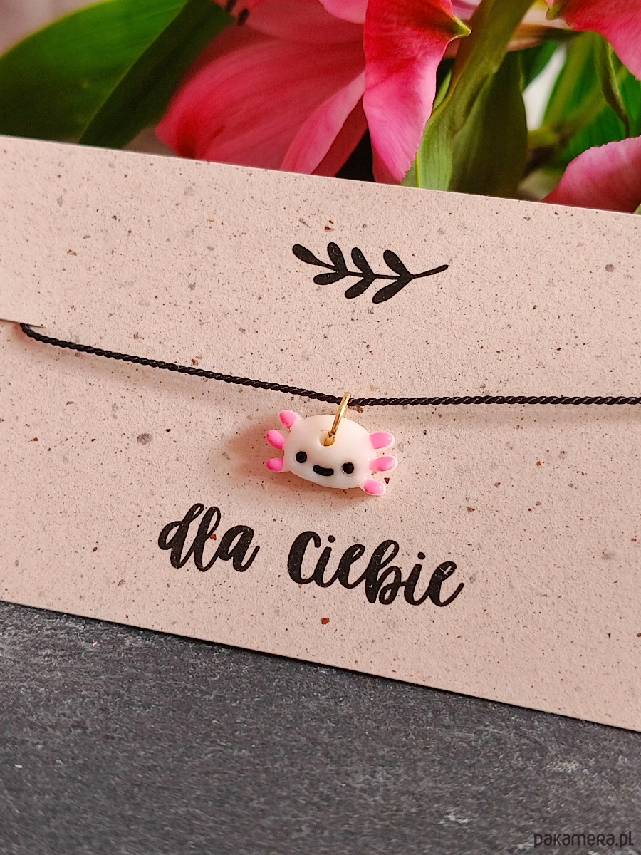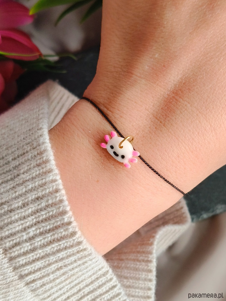 Bransoletka z aksolotlem, urocza biżuteria kawaii, ze słodkim zwierzakiem