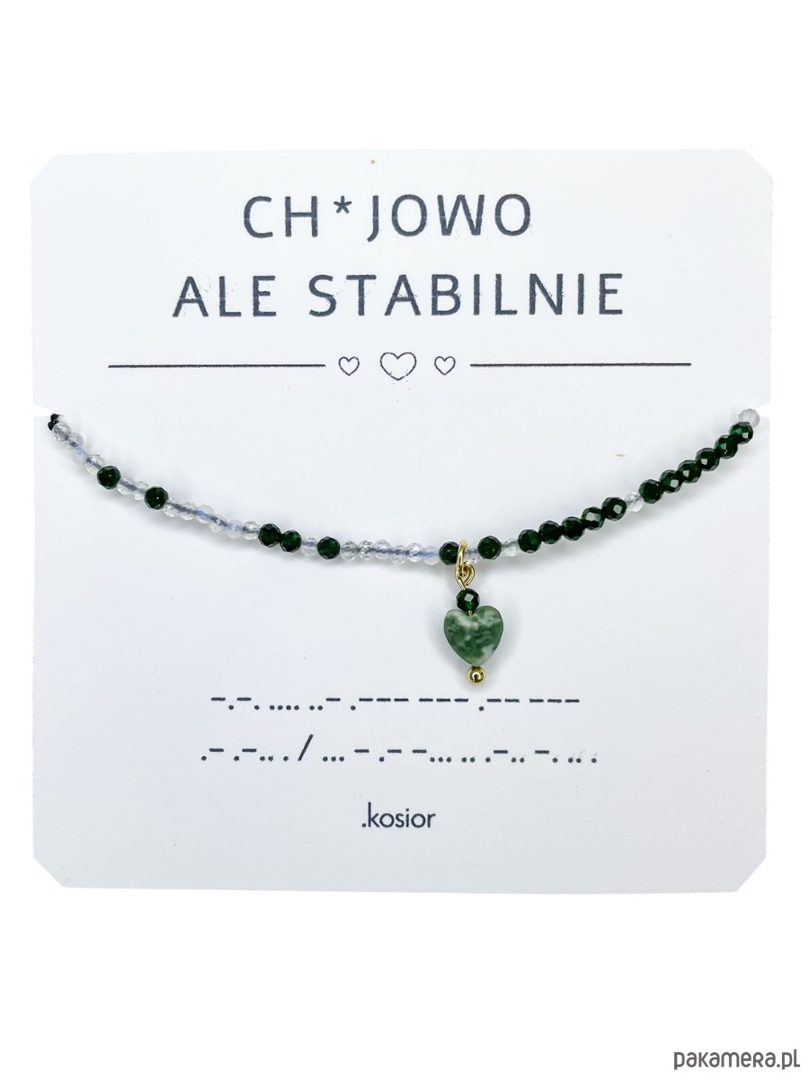 Czasem wszystko się sypie, ale Ty nadal wstajesz, parzysz kawę i wychodzisz z miną „mam to pod kontrolą”. I właśnie wtedy ta bransoletka ma największą moc – nie rzuca się w oczy, ale mówi (dosłownie): „Ch*jowo, ale stabilnie”. Zakodowane w alfabecie Morse’a – dla wtajemniczonych.