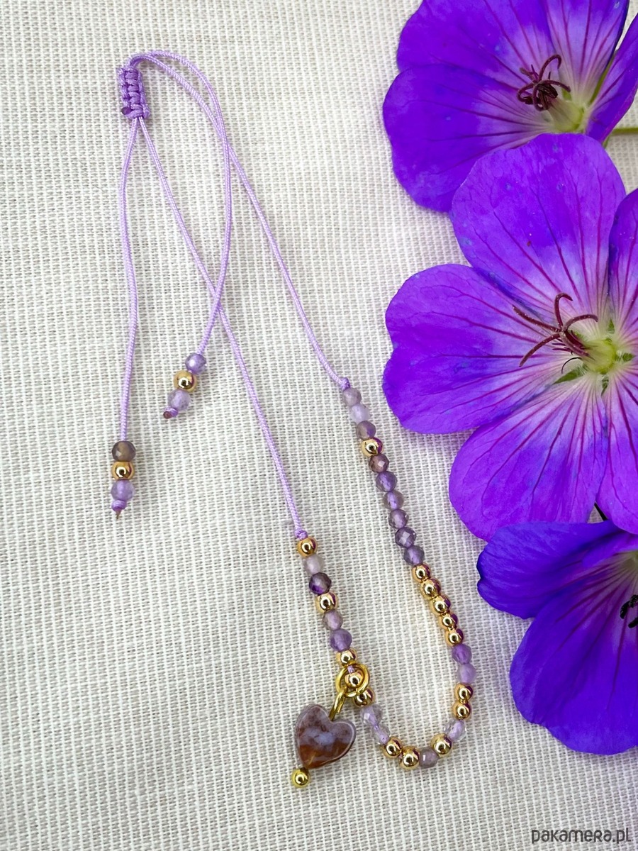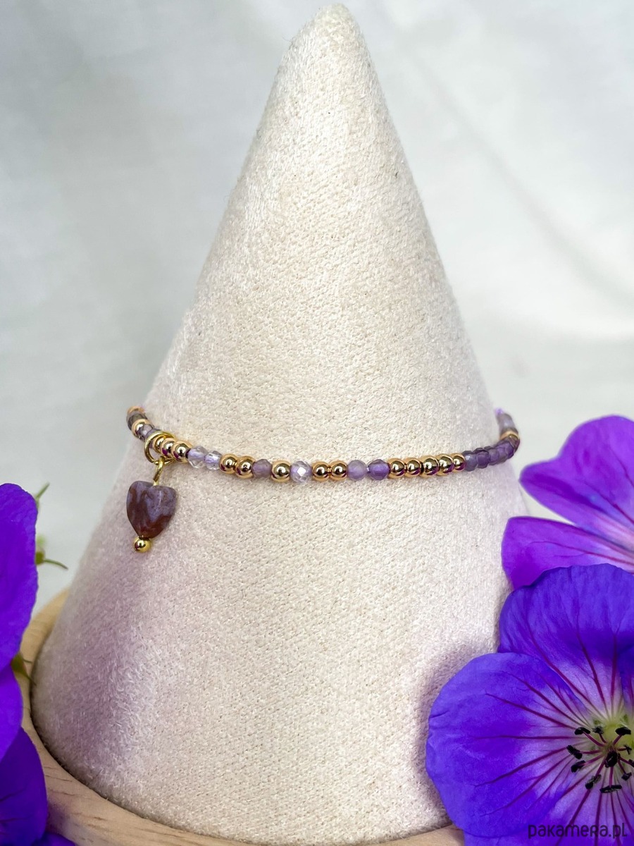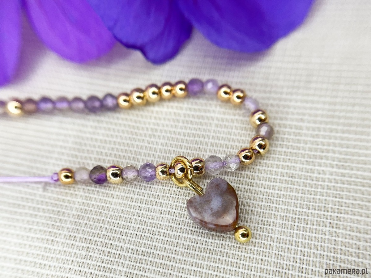 Kamienie: Hematyt 2mm, Ametyst 2,5mm, Agat indyjski serce 6mm