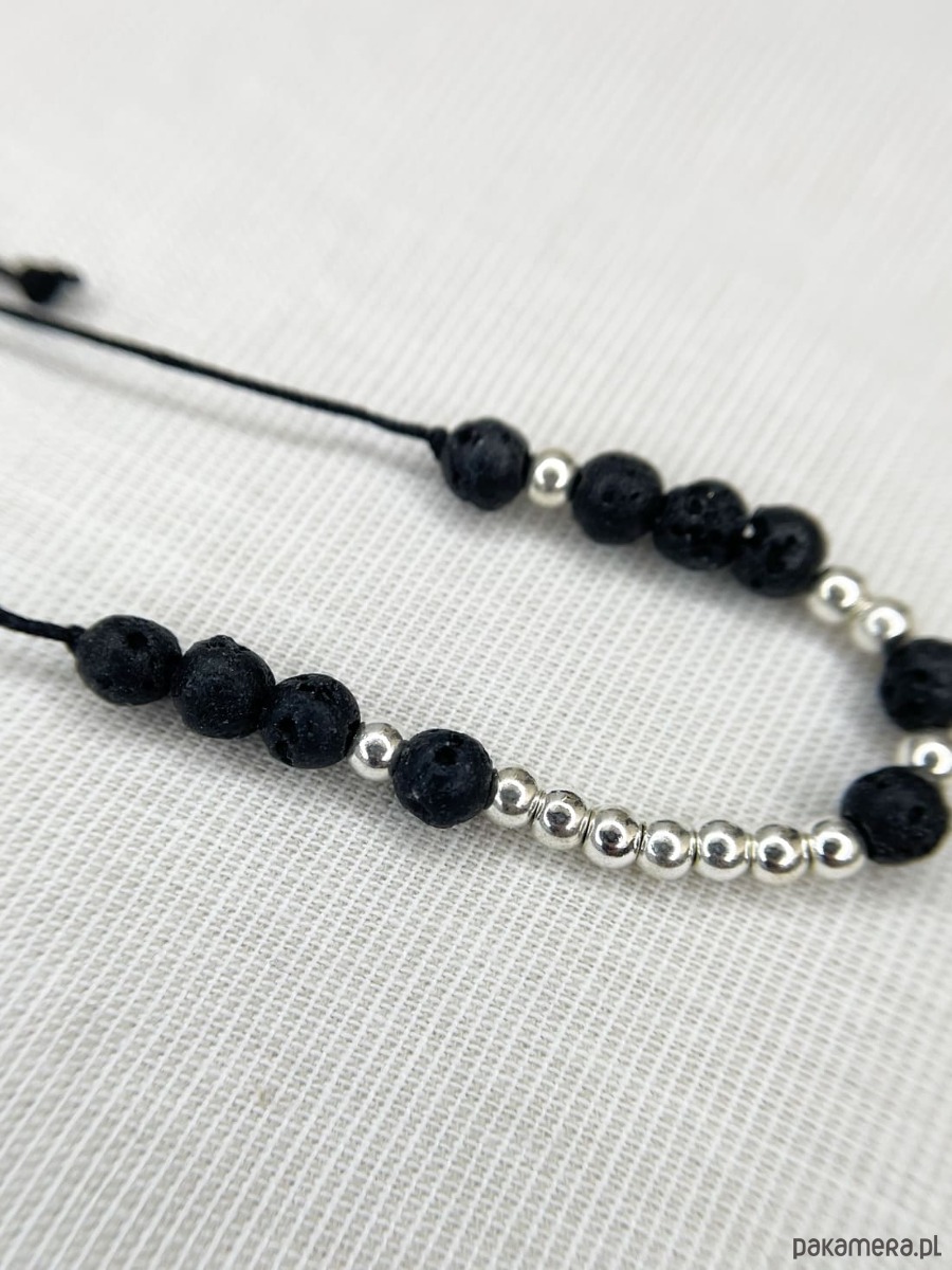 Bransoletka z alfabetem Morse Hematyt i Lawa wulkaniczna