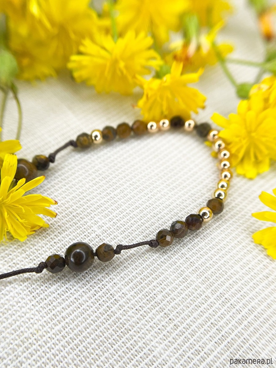 Bransoletka z alfabetem Morse Hematyt, Tygrysie oko
