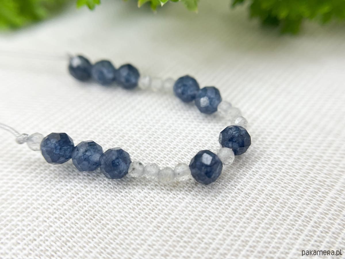 Bransoletka z alfabetem Morse Jadeit indygo Labradoryt