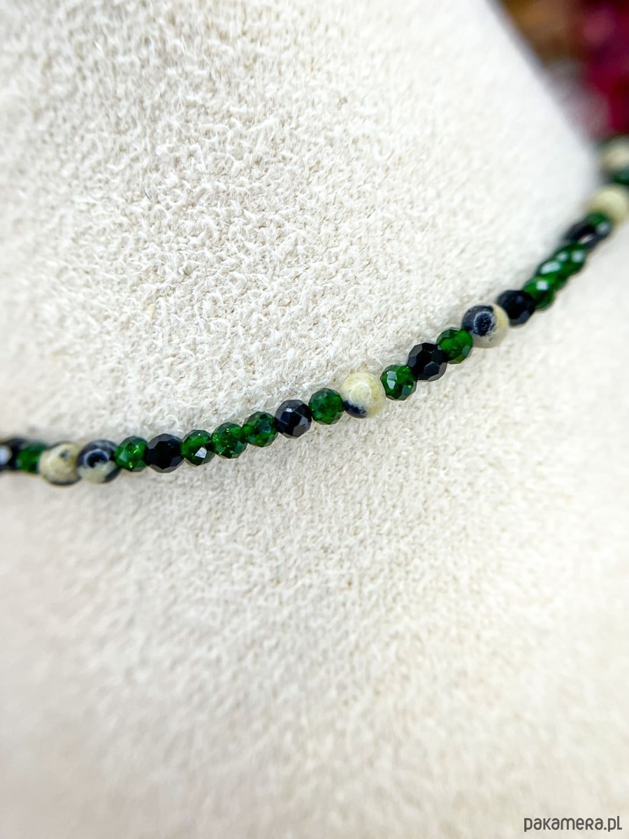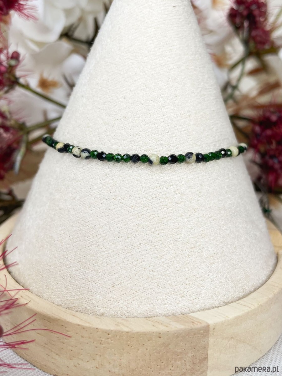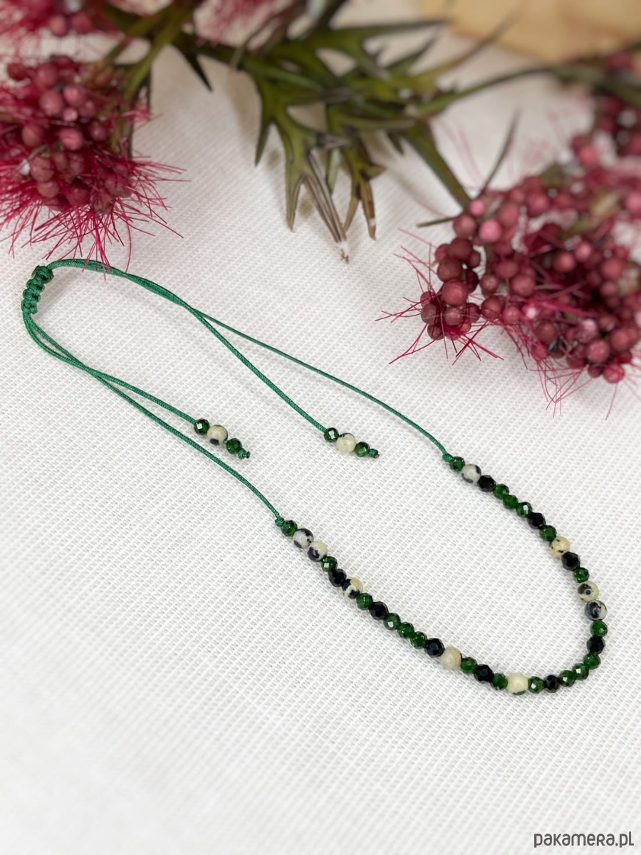 Bransoletka z alfabetem Morse Jaspis dalamtyński, Spinel i Szmaragd Nilu