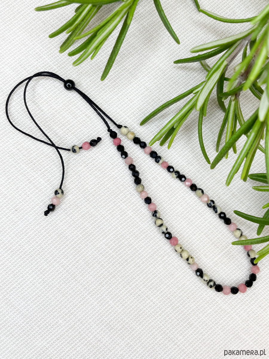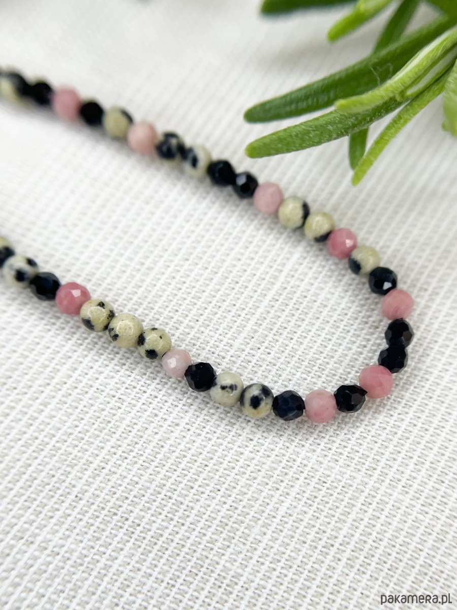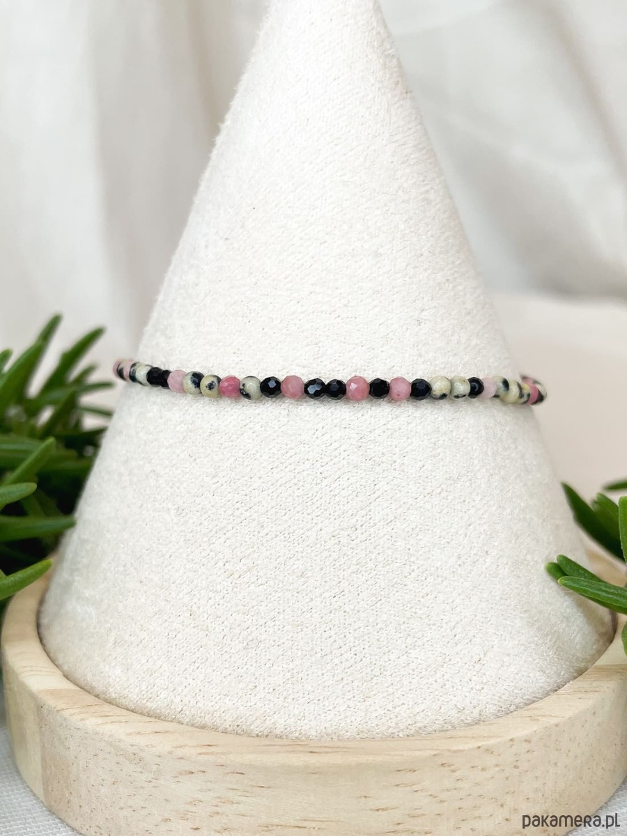 Bransoletka z alfabetem Morse Jaspis dalmatyński, Rodonit, Spinel, Turmalin