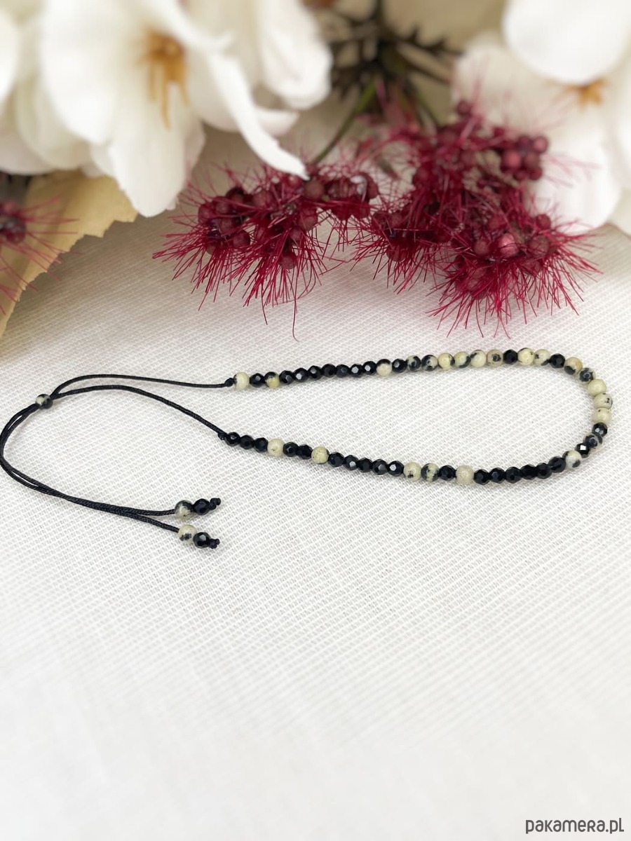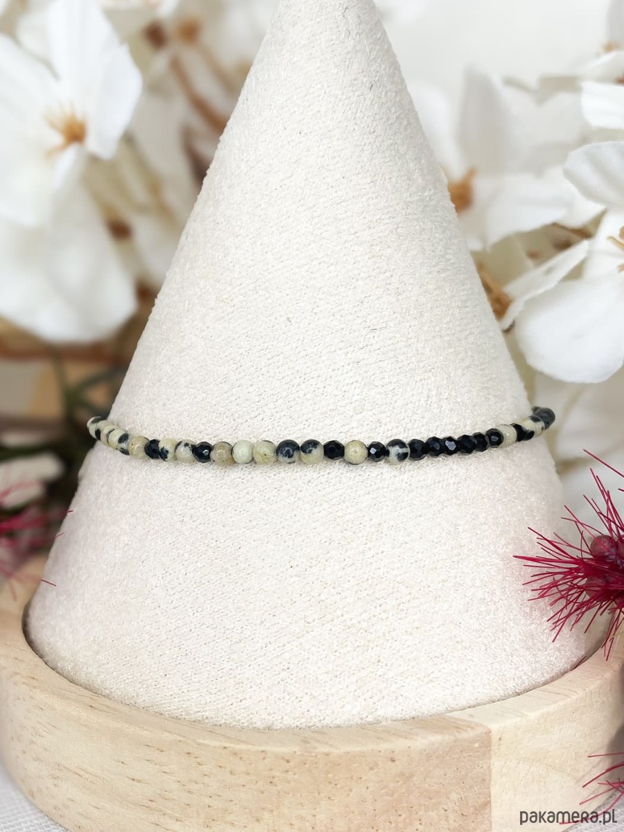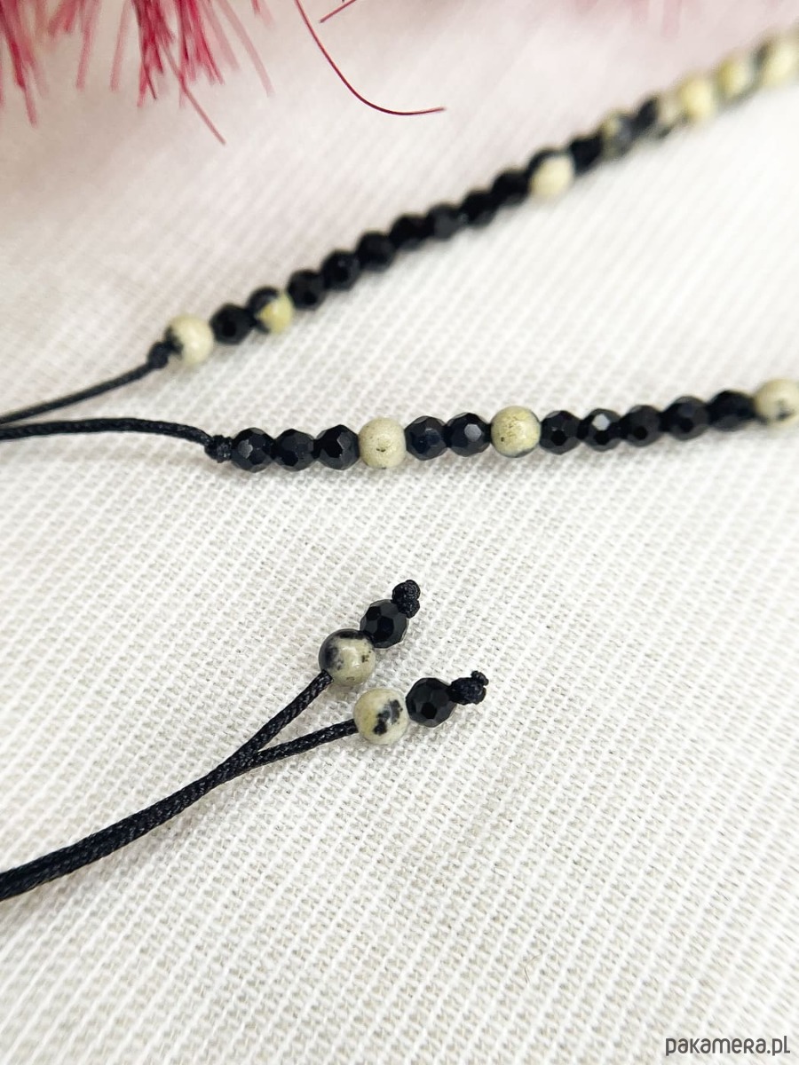 Bransoletka z alfabetem Morse Jaspis dalmatyński Spinel
