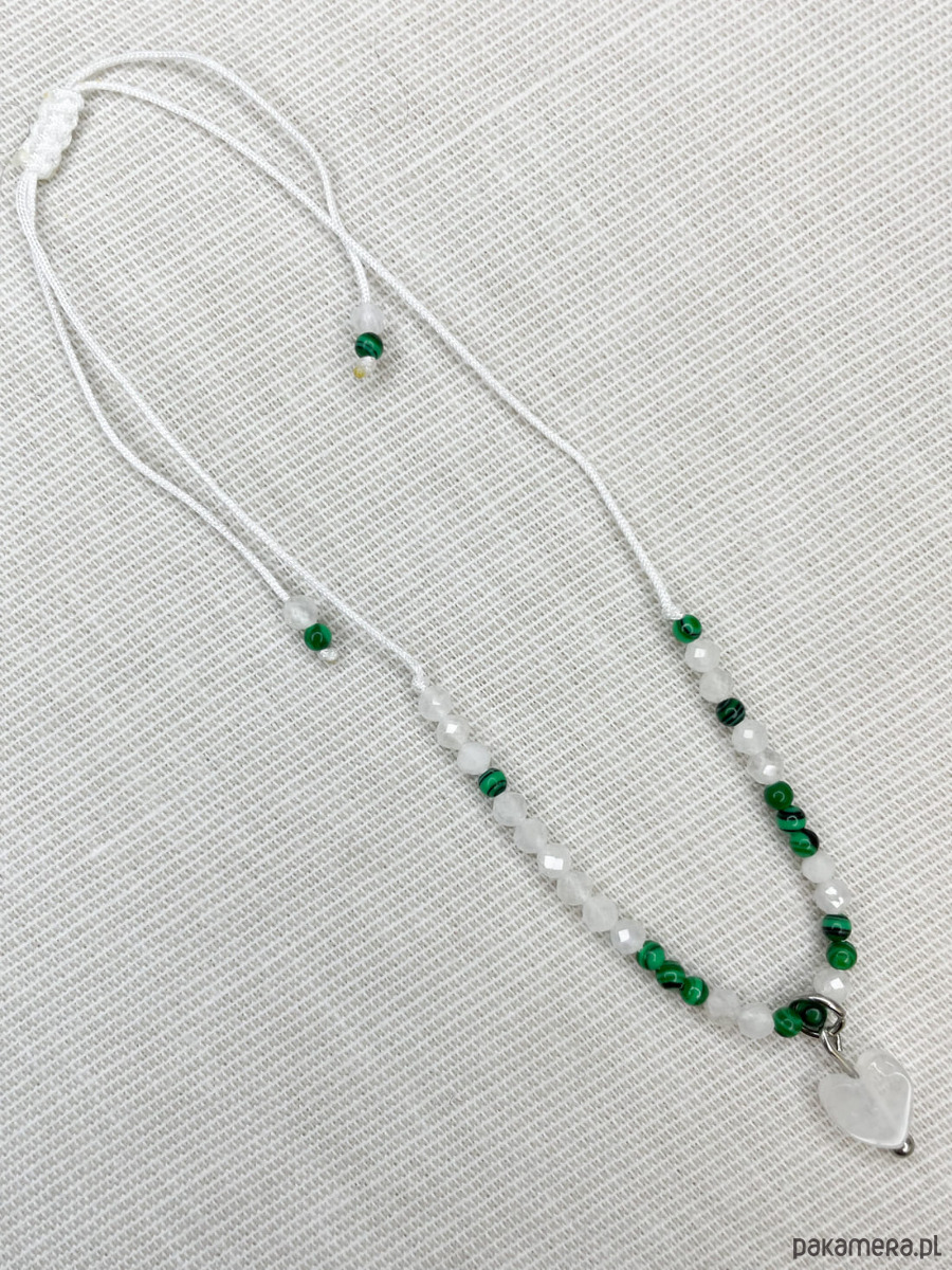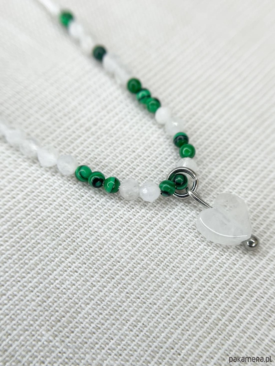 Kamienie: Malachit 2mm, Księżycowy 2mm, Kryształ górski serce 6mm