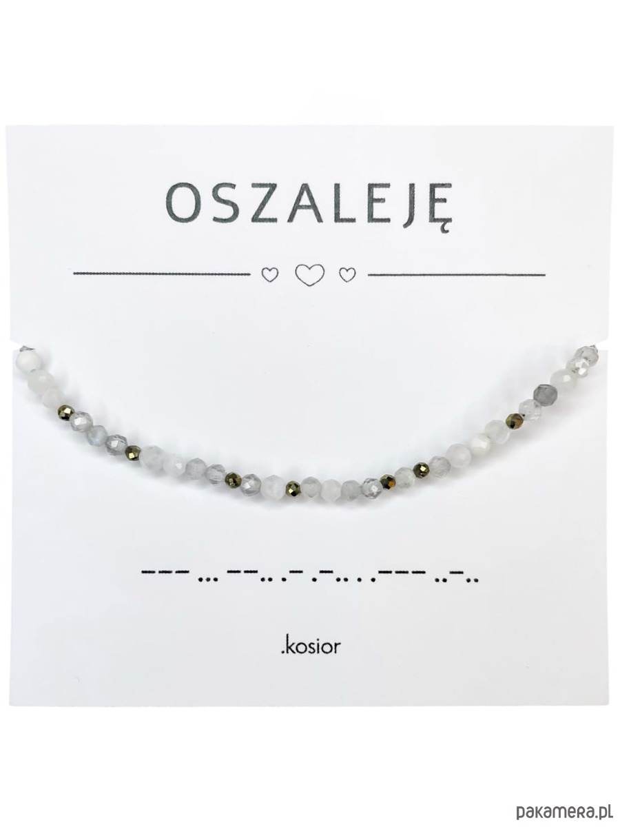 Bransoletka z alfabetem Morse Labradoryt, Księżycowy, Piryt