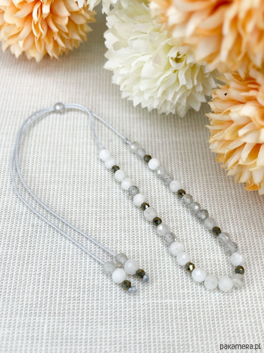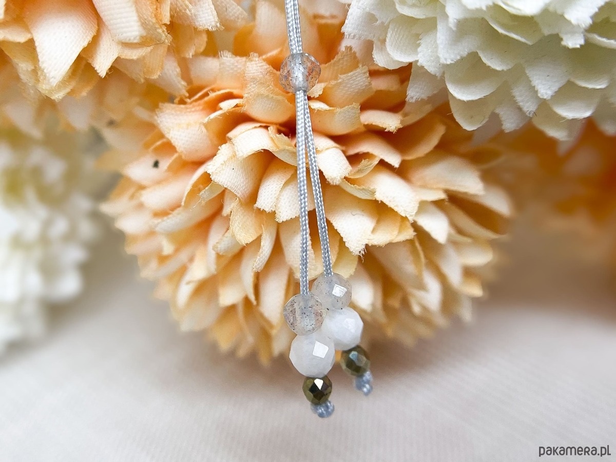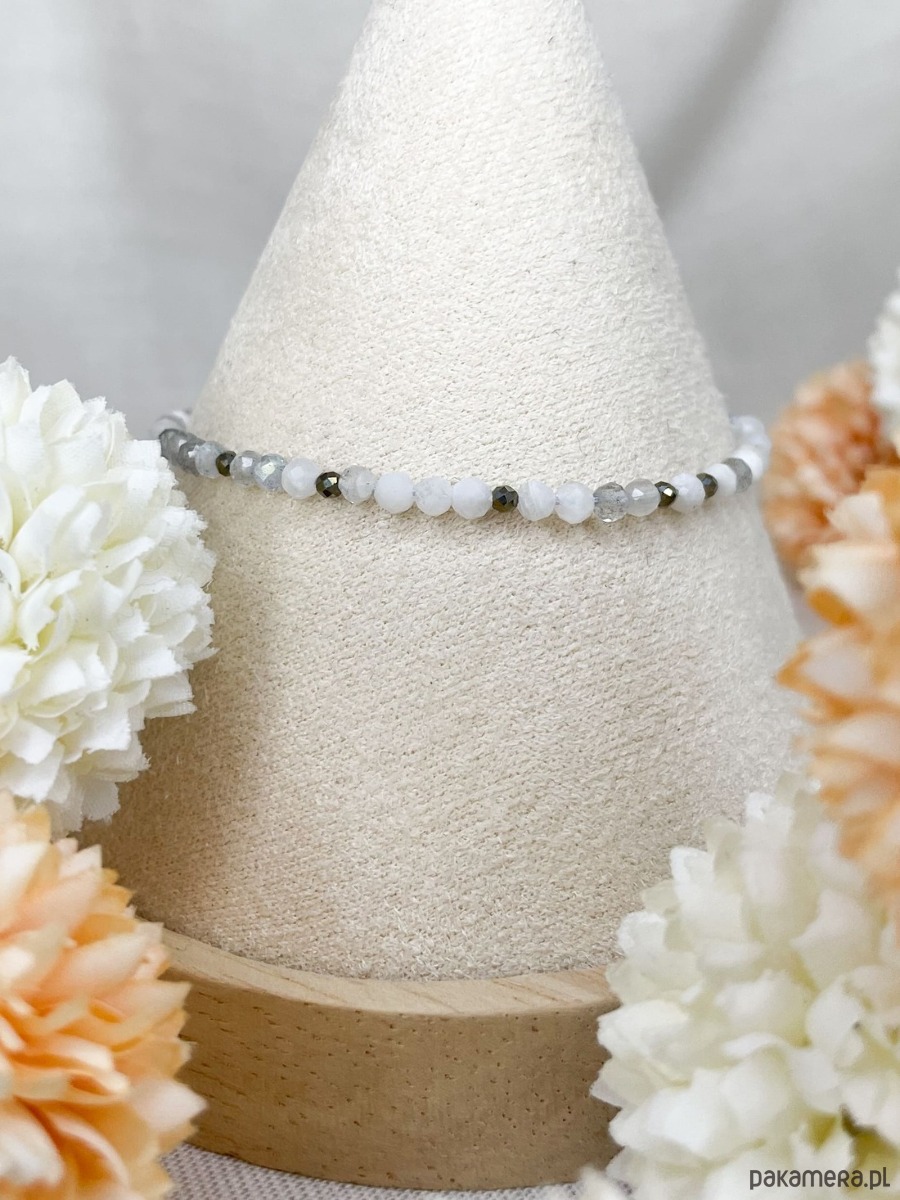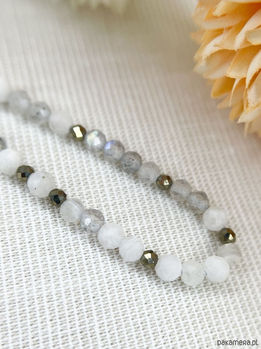 Kamienie: Labradoryt 3mm, Księżycowy 3mm, Piryt 2mm