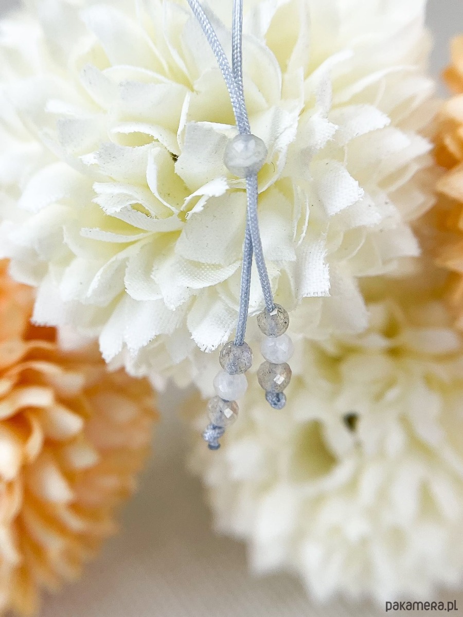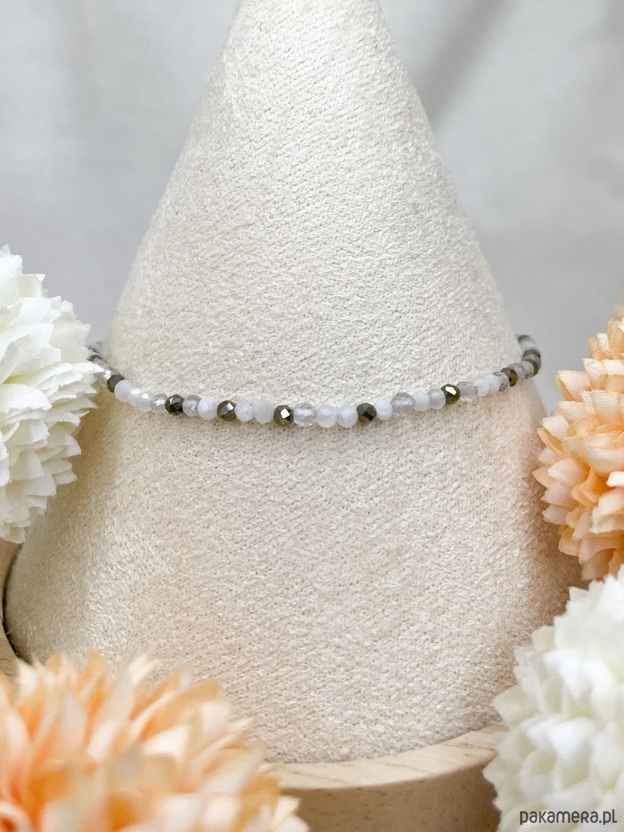 Bransoletka z alfabetem Morse Labradoryt, Księżycowy, Piryt