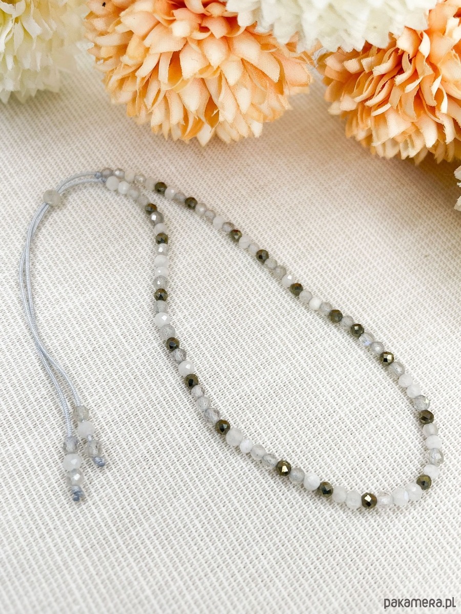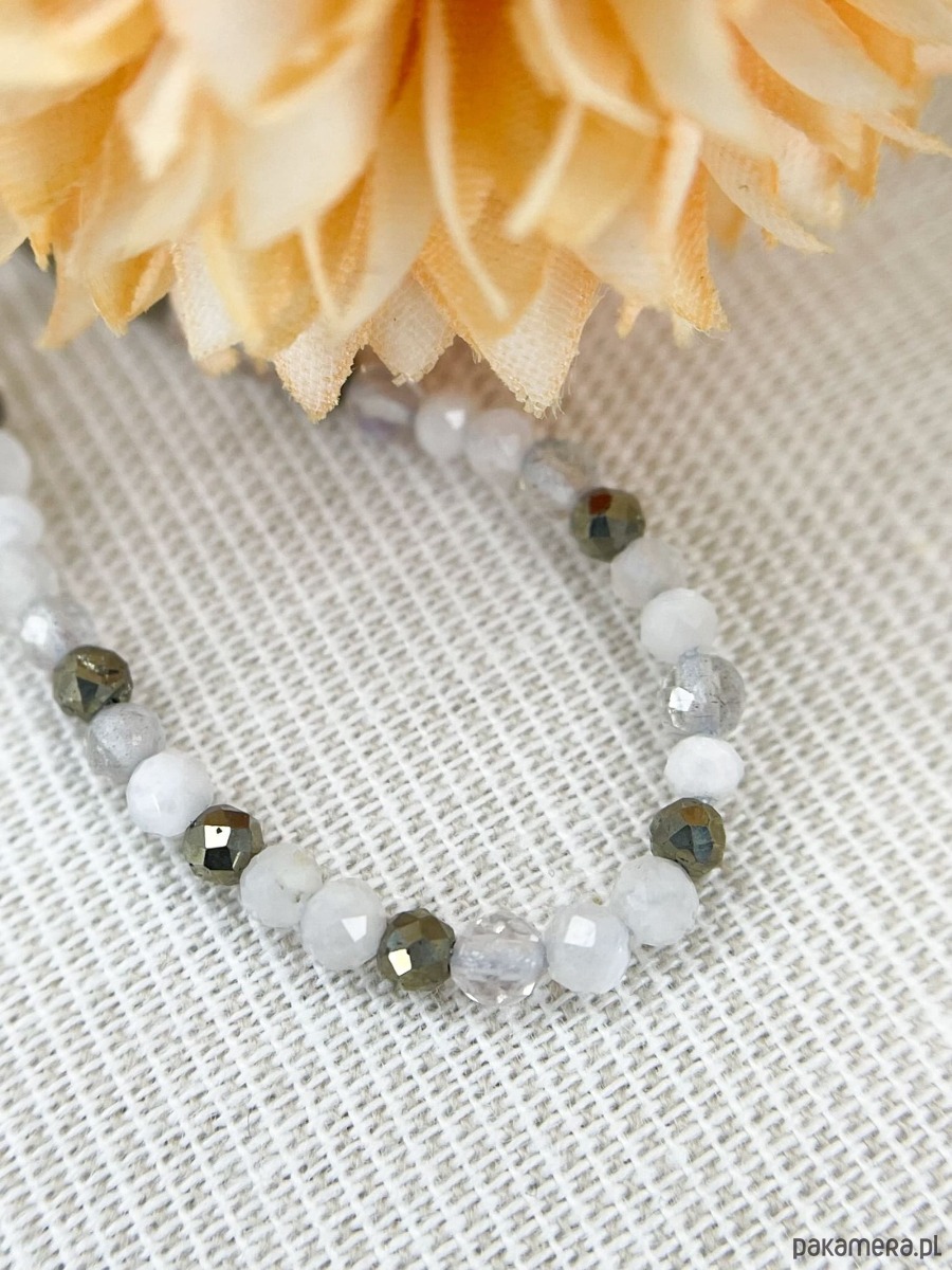 Kamienie: Labradoryt 2mm i 3mm, Księżycowy 2mm, Piryt 2mm