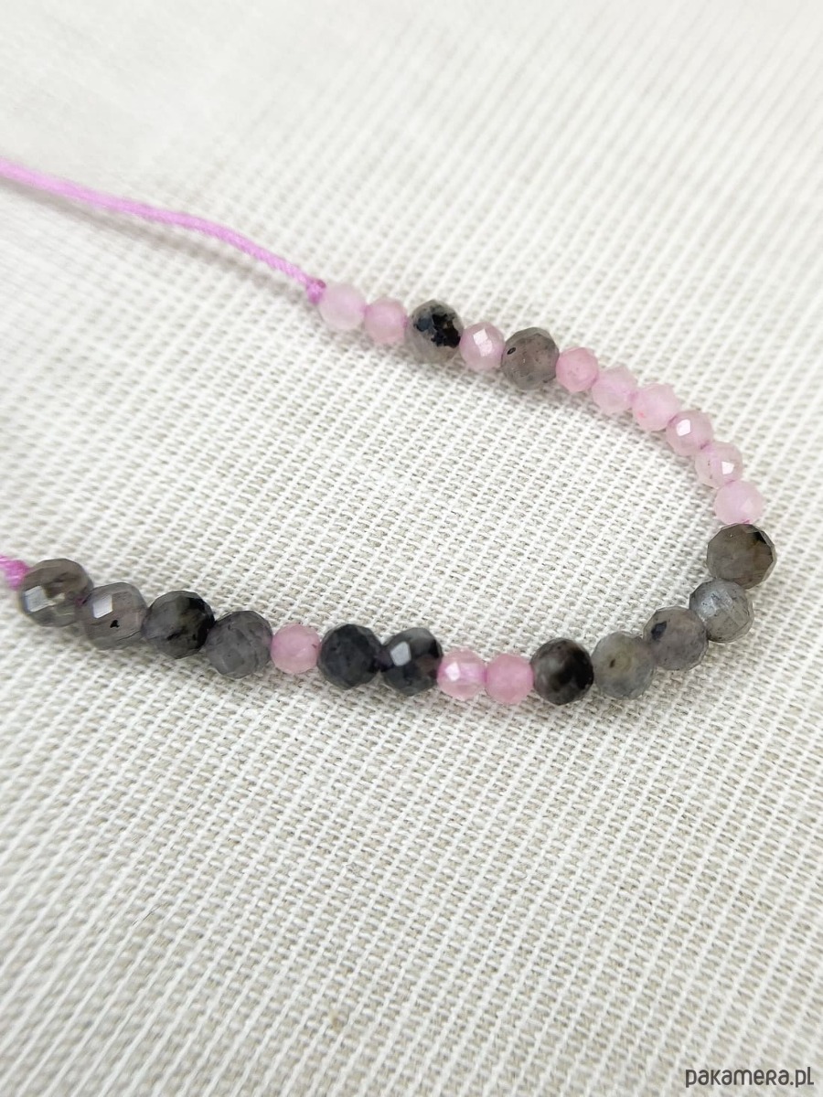 Kamienie: Labradoryt 3mm, Kwarc różowy 2mm