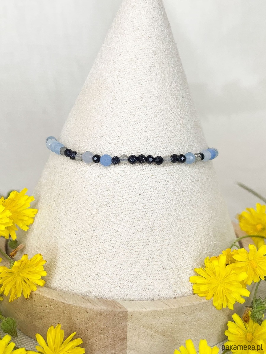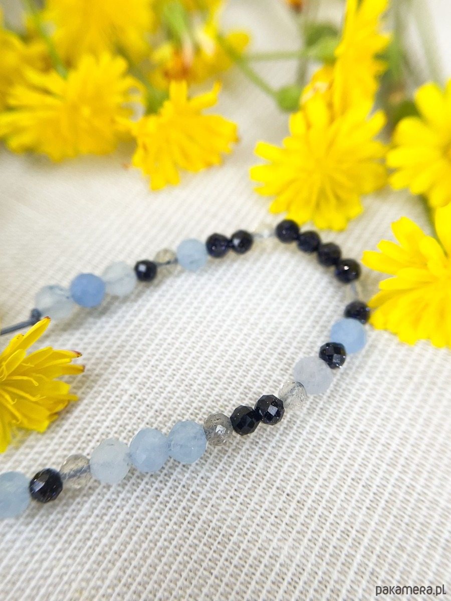 Kamienie: Noc Kairu 2mm, Labradoryt 2mm, Akwamaryn 4mm