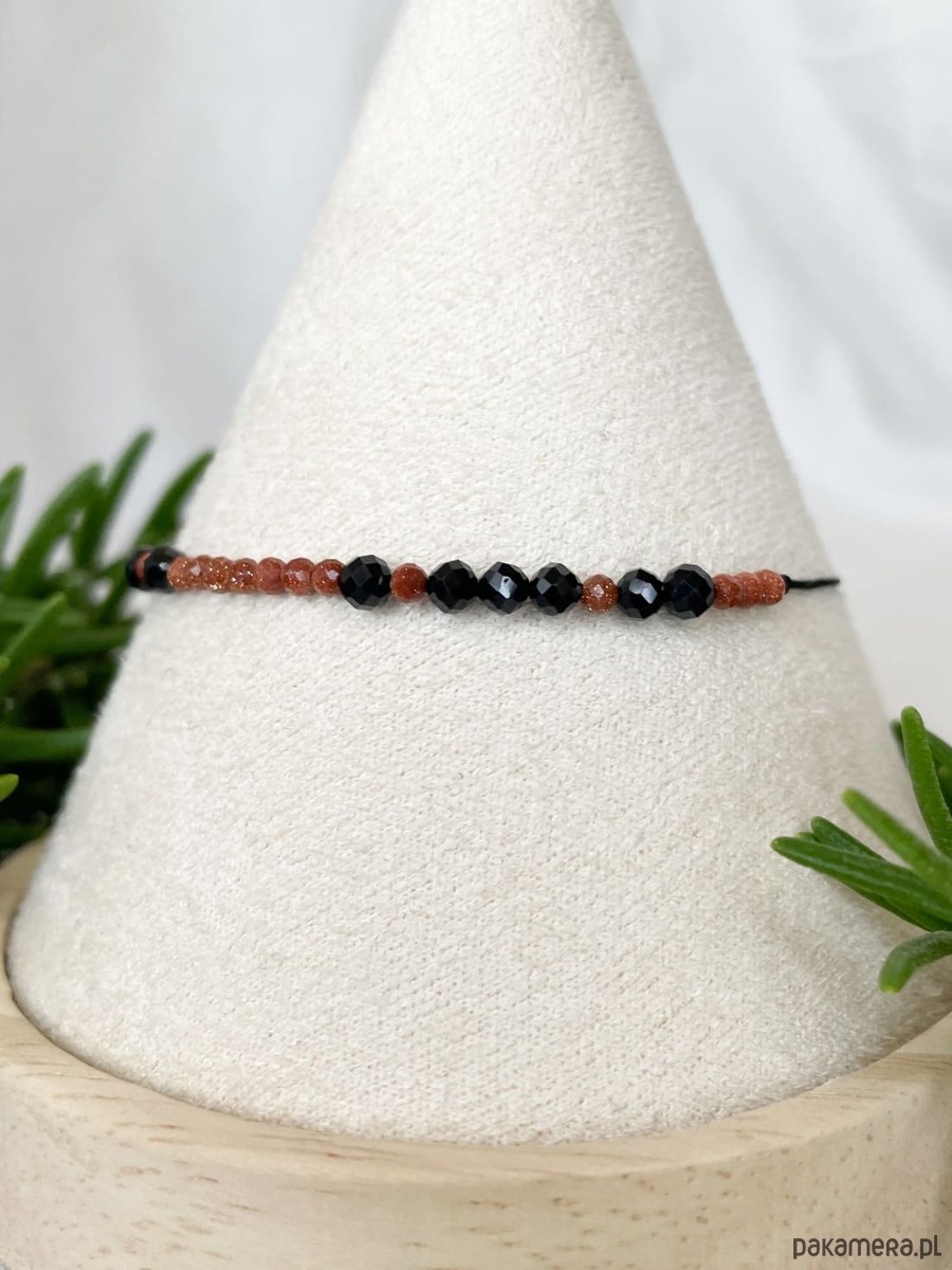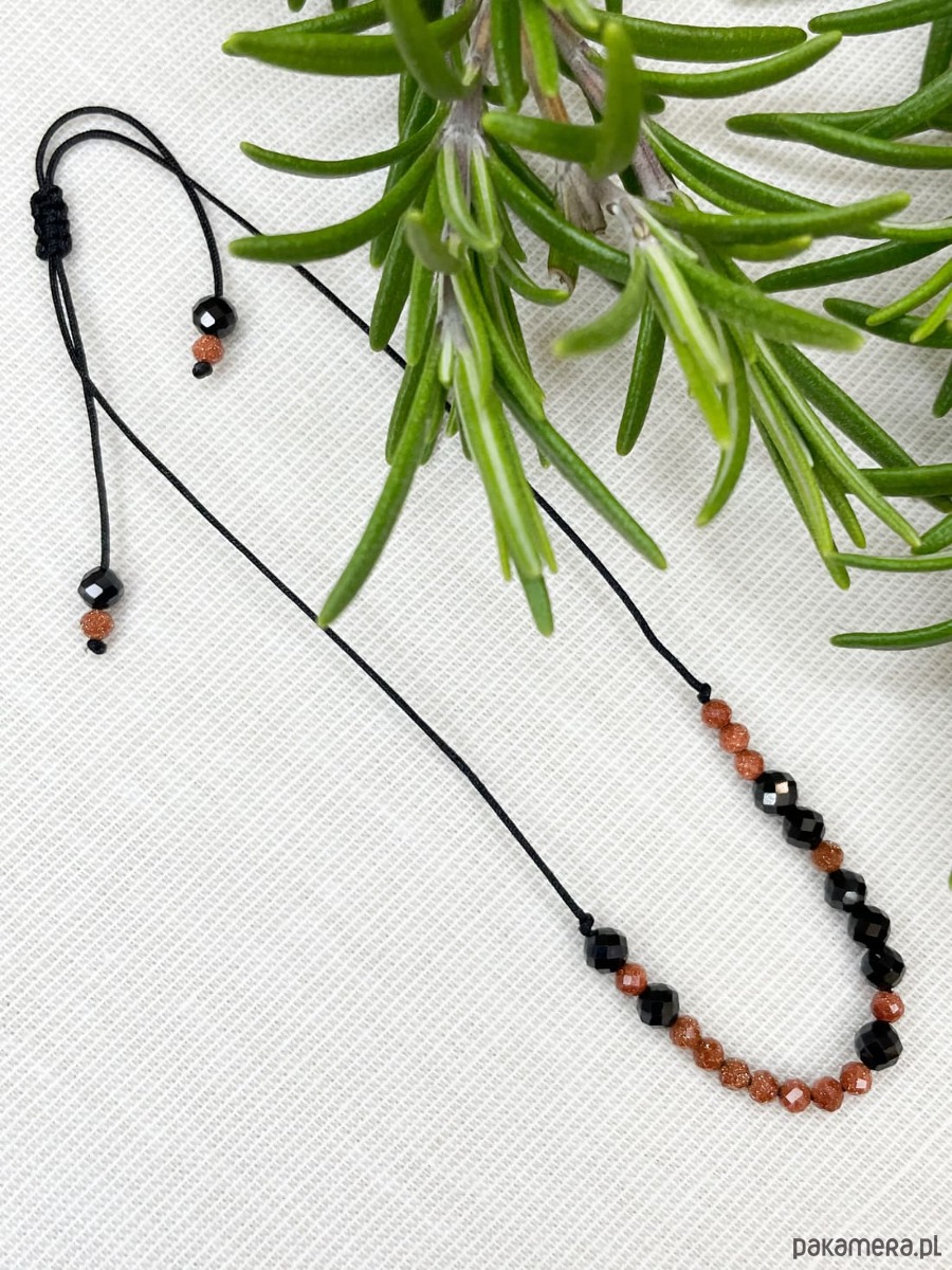 Kamienie: Piasek pustyni 2mm (pomarańczowy), Agat 3mm (czarny)
