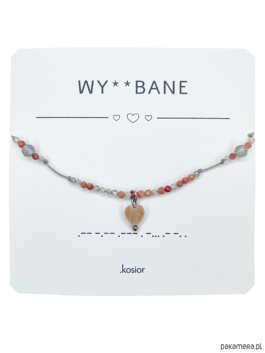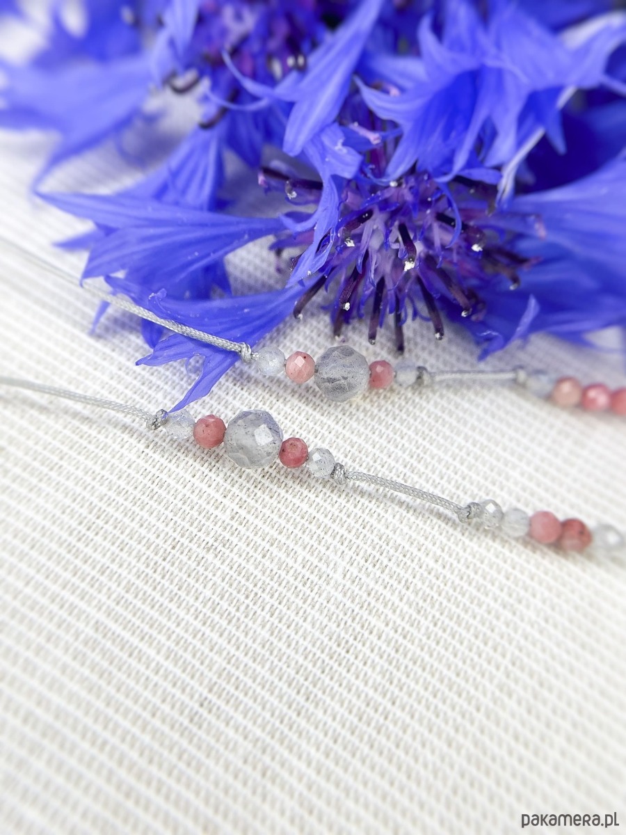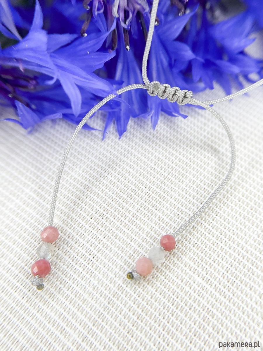 Bransoletka z Alfabetem Morse Rodonit i Labradoryt