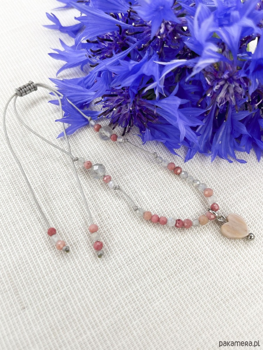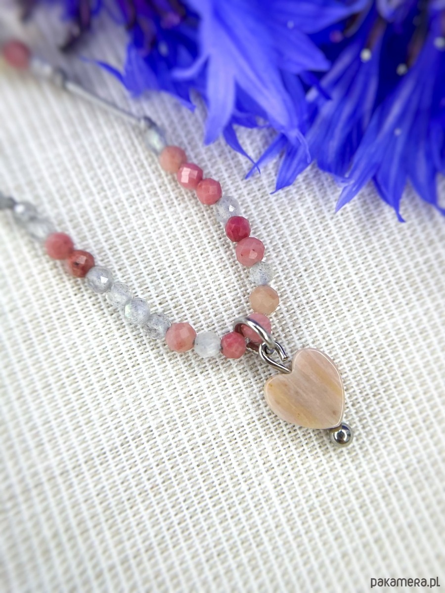Rodonit 2mm, Labradoryt 4mm i 2mm, Rodohozyt serce 6mm