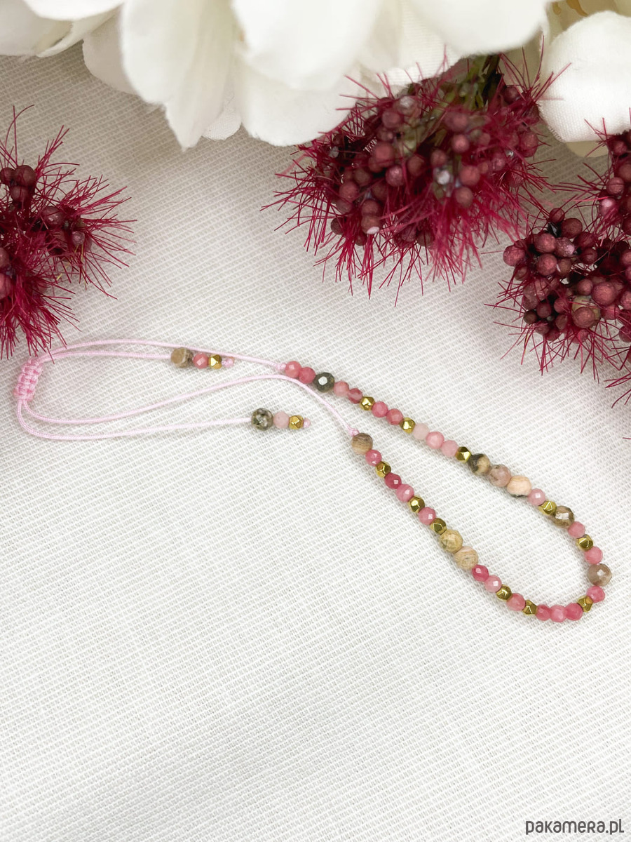 Bransoletka z alfabetem Morse Rodonit, Rodochrozyt, Hematyt