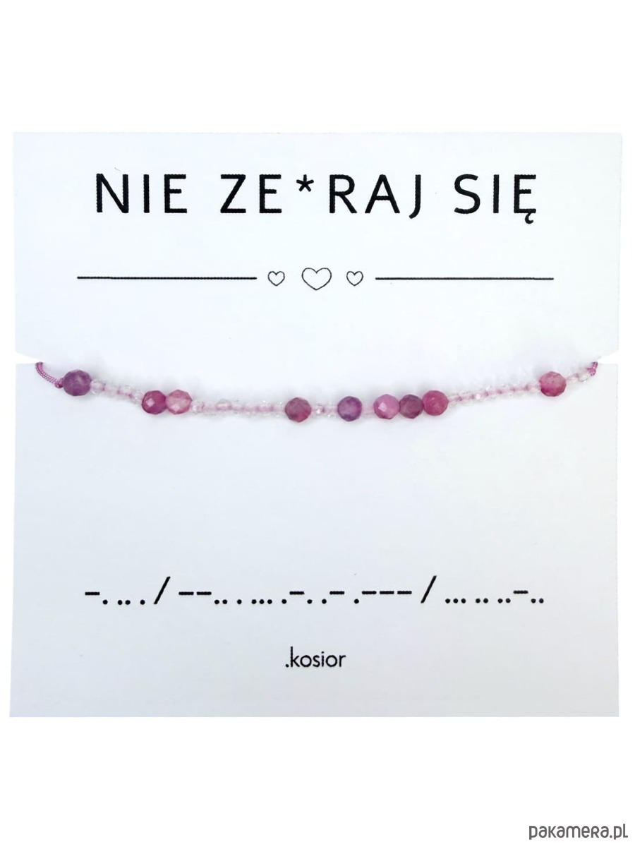 Bransoletka z alfabetem Morse Różowy turmalin, Kryształ górski