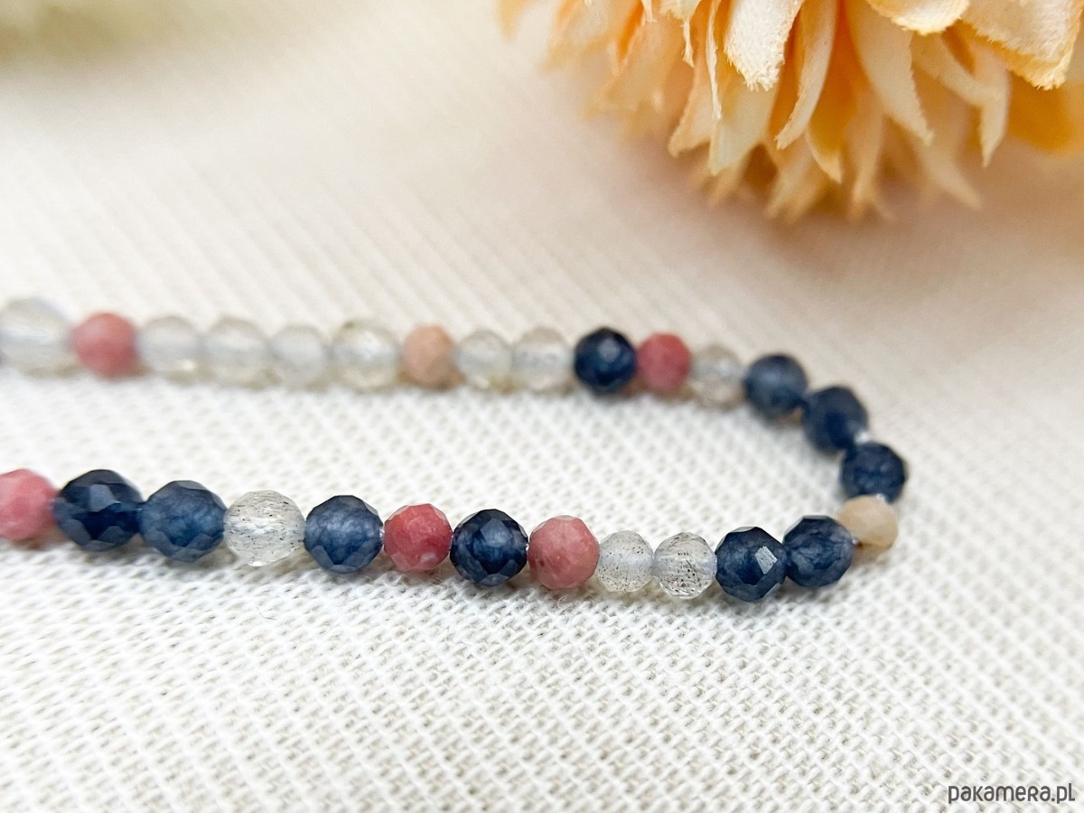 Kamienie: Jadeit 2mm, Rodonit 2mm, Labradoryt 2mm i 3mm