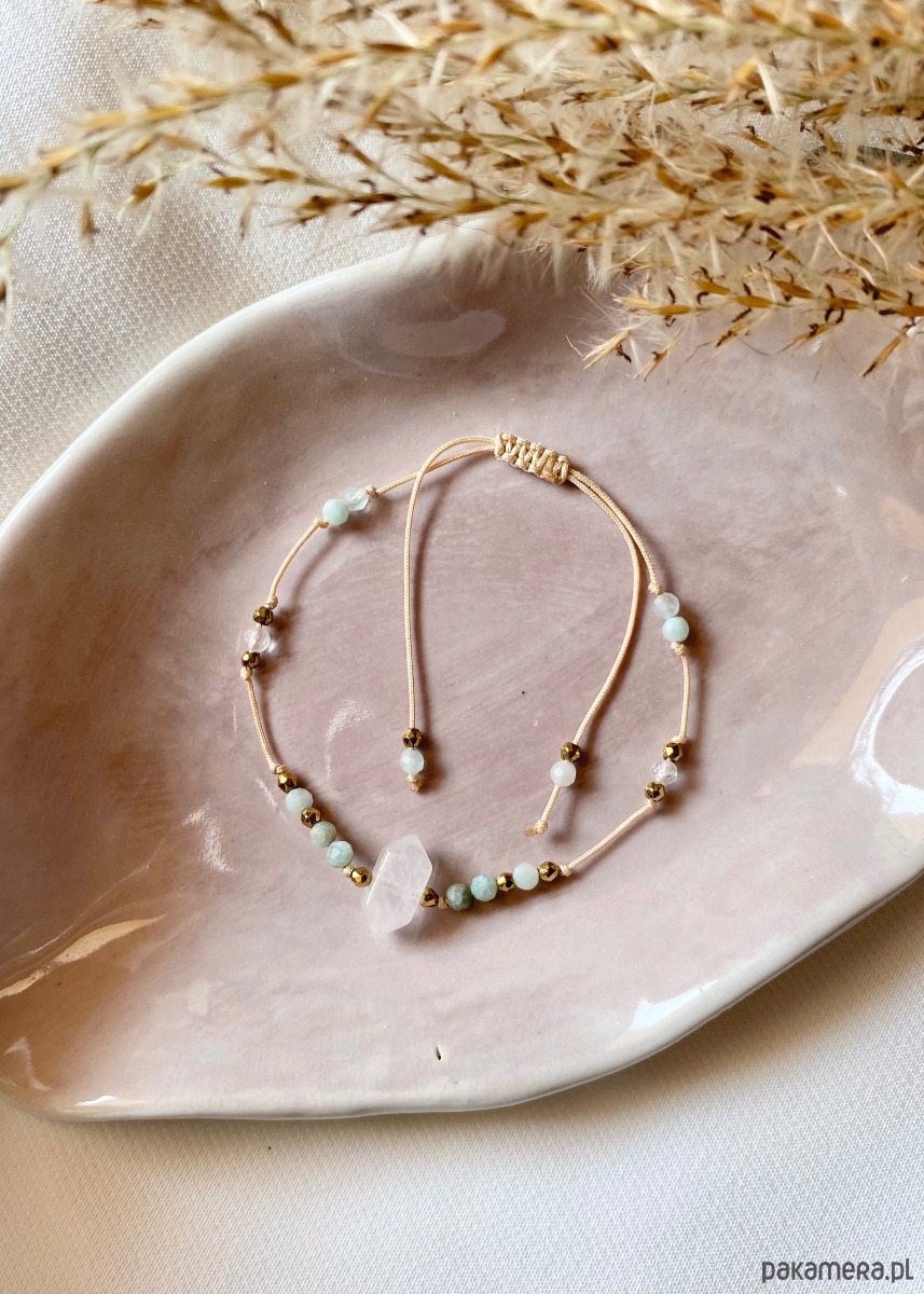 Szukasz biżuterii, która nie tylko zachwyca swoim wyglądem, ale też niesie ze sobą pozytywną energię i głęboką symbolikę? Bransoletka z Amazonitem i Kryształem Górskim to połączenie subtelności i siły natury, stworzone z myślą o kobietach, które pragną nosić coś więcej niż tylko ozdobę. Ręcznie wykonana na beżowym sznurku jubilerskim, zachwyca naturalnymi kamieniami i minimalistyczną, a zarazem pełną harmonii kompozycją.
