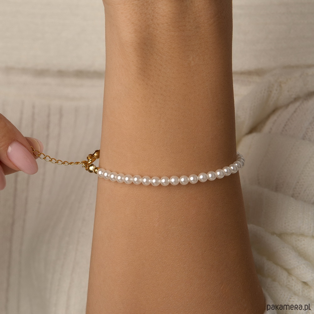 Bransoletka z białych pereł 4mm oraz srebra 925 pozłacanego