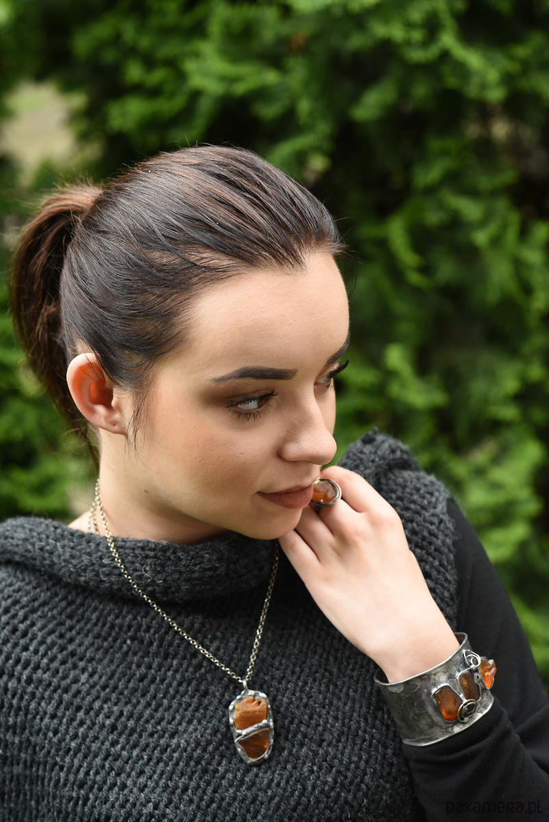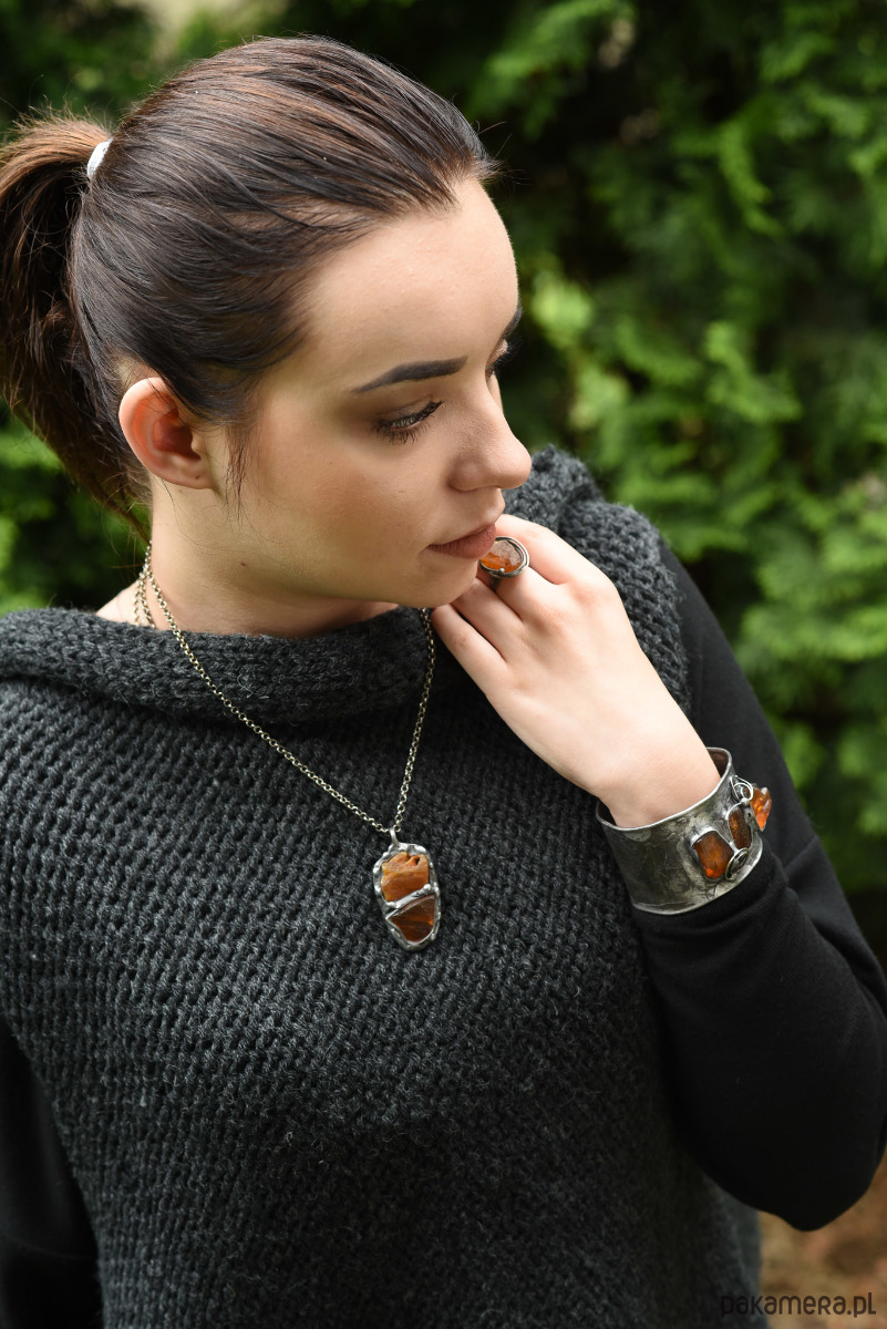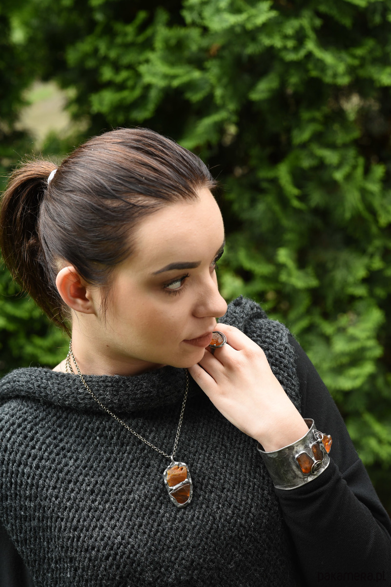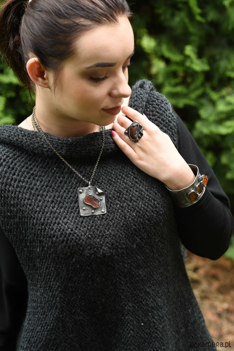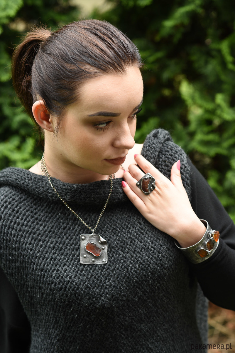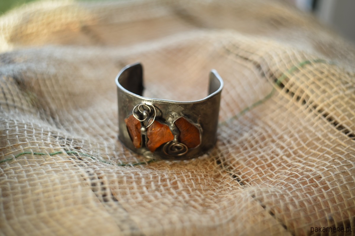 Bransoletka miedziana patynowana z bursztynem naturalnym
