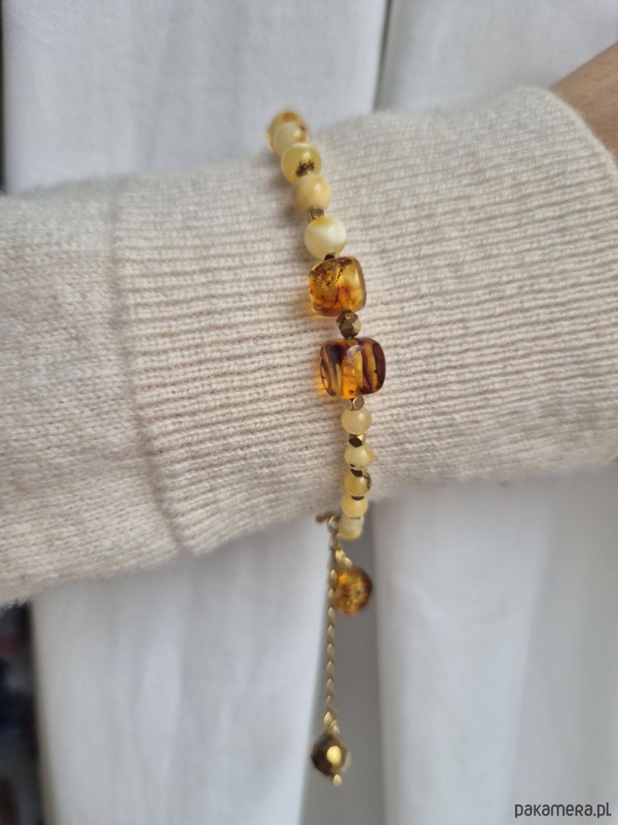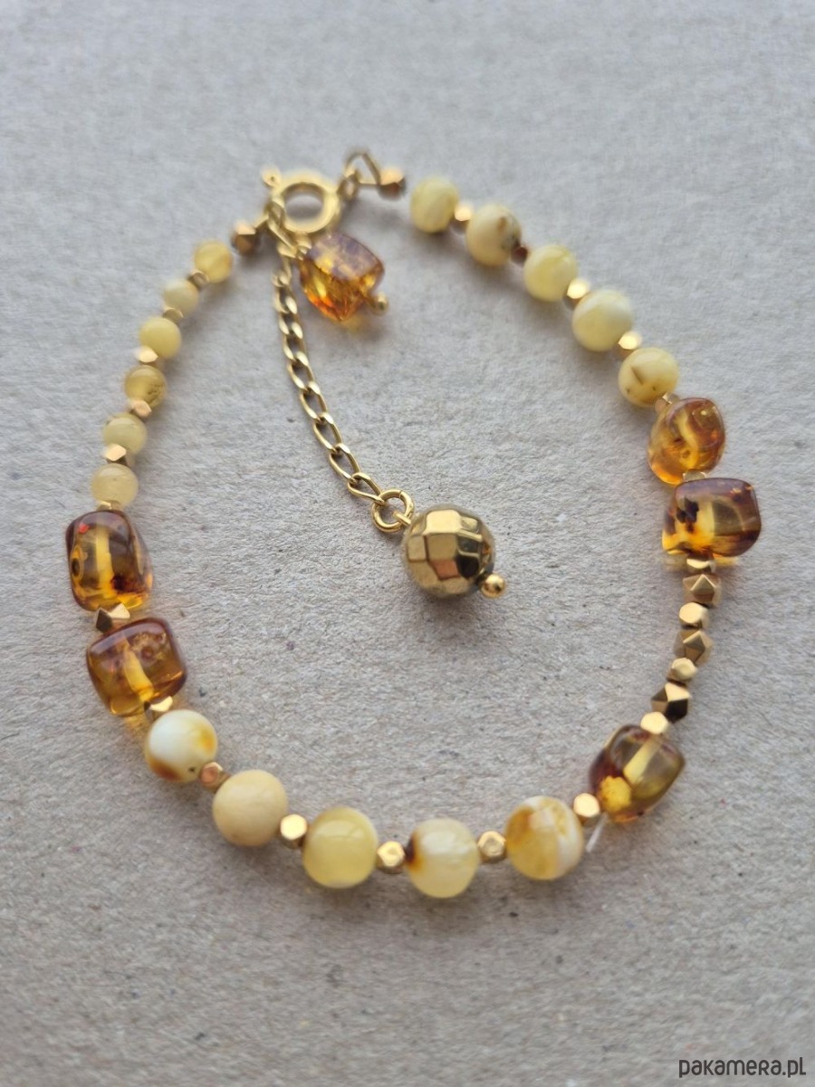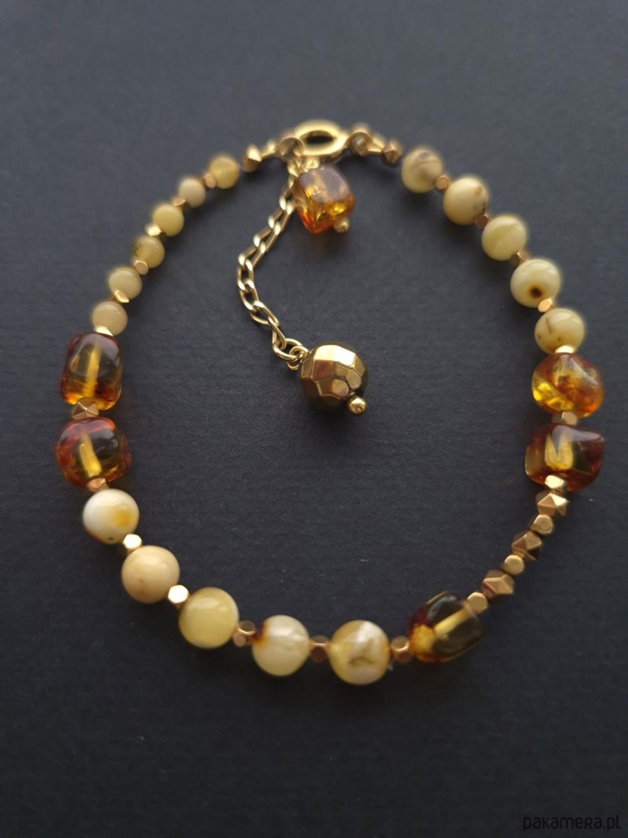 Bransoletka z bursztynów i złotych elementów Złota Adela