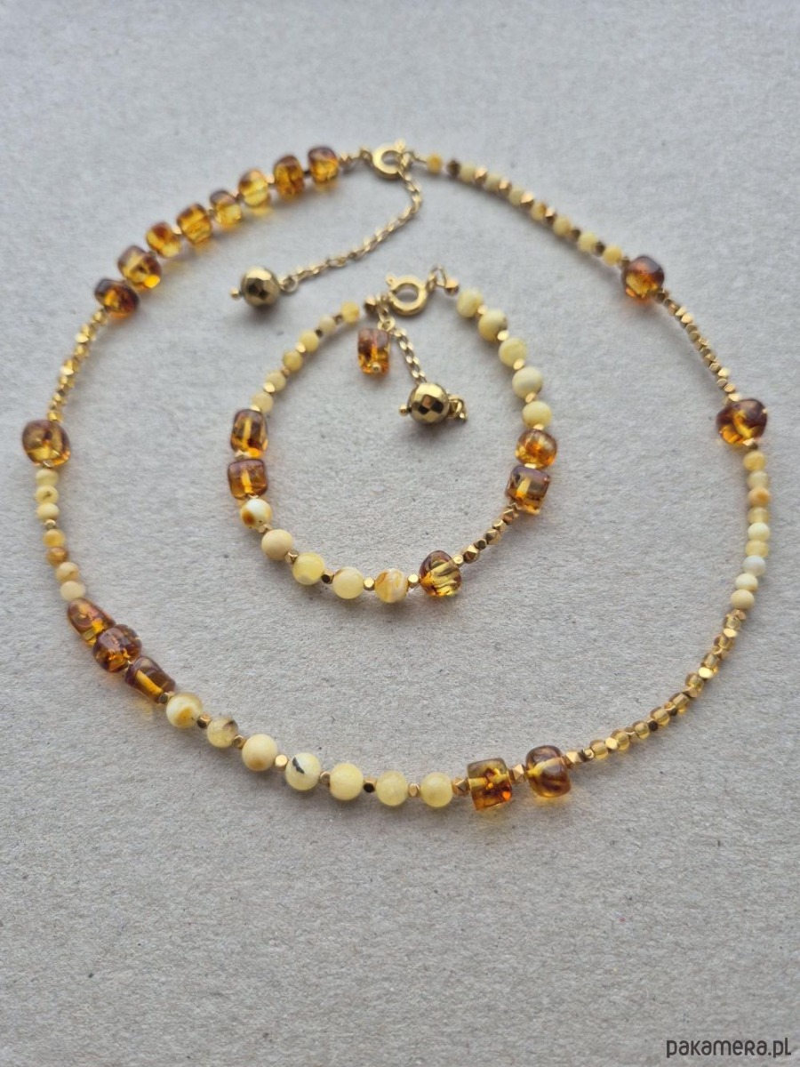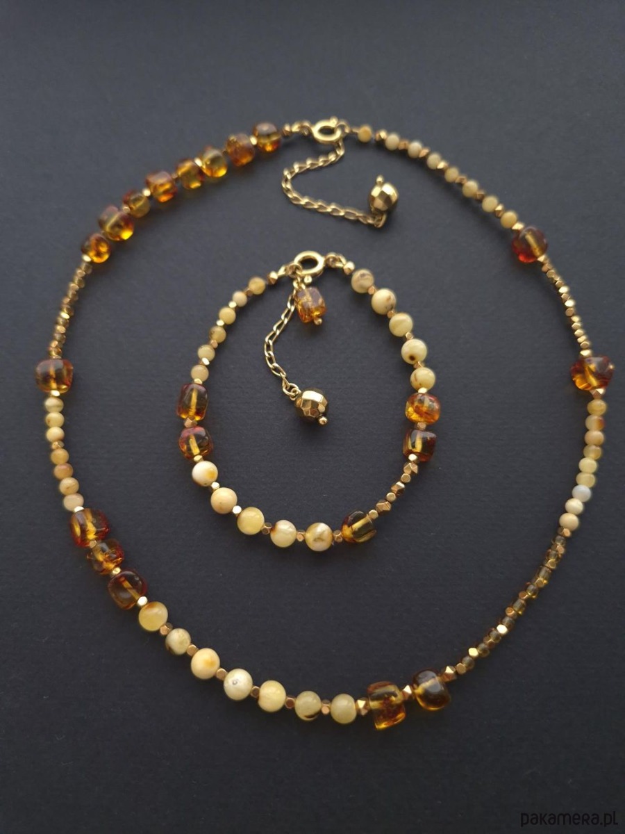 Do kompletu dostępny jest również naszyjnik z bursztynów w tej samej stylistyce.