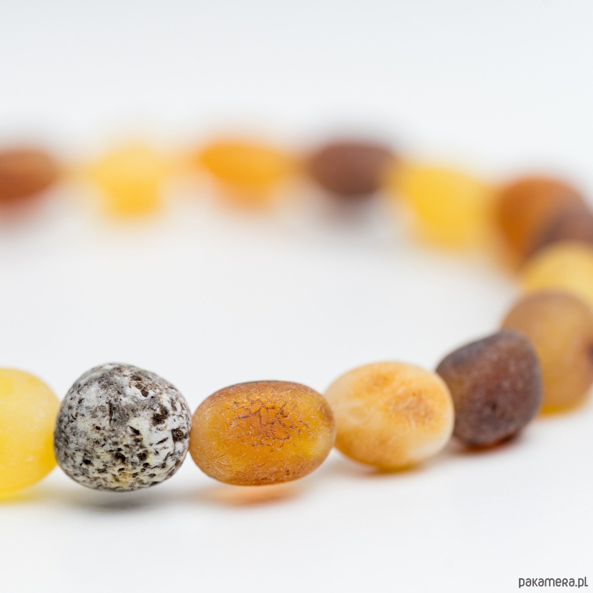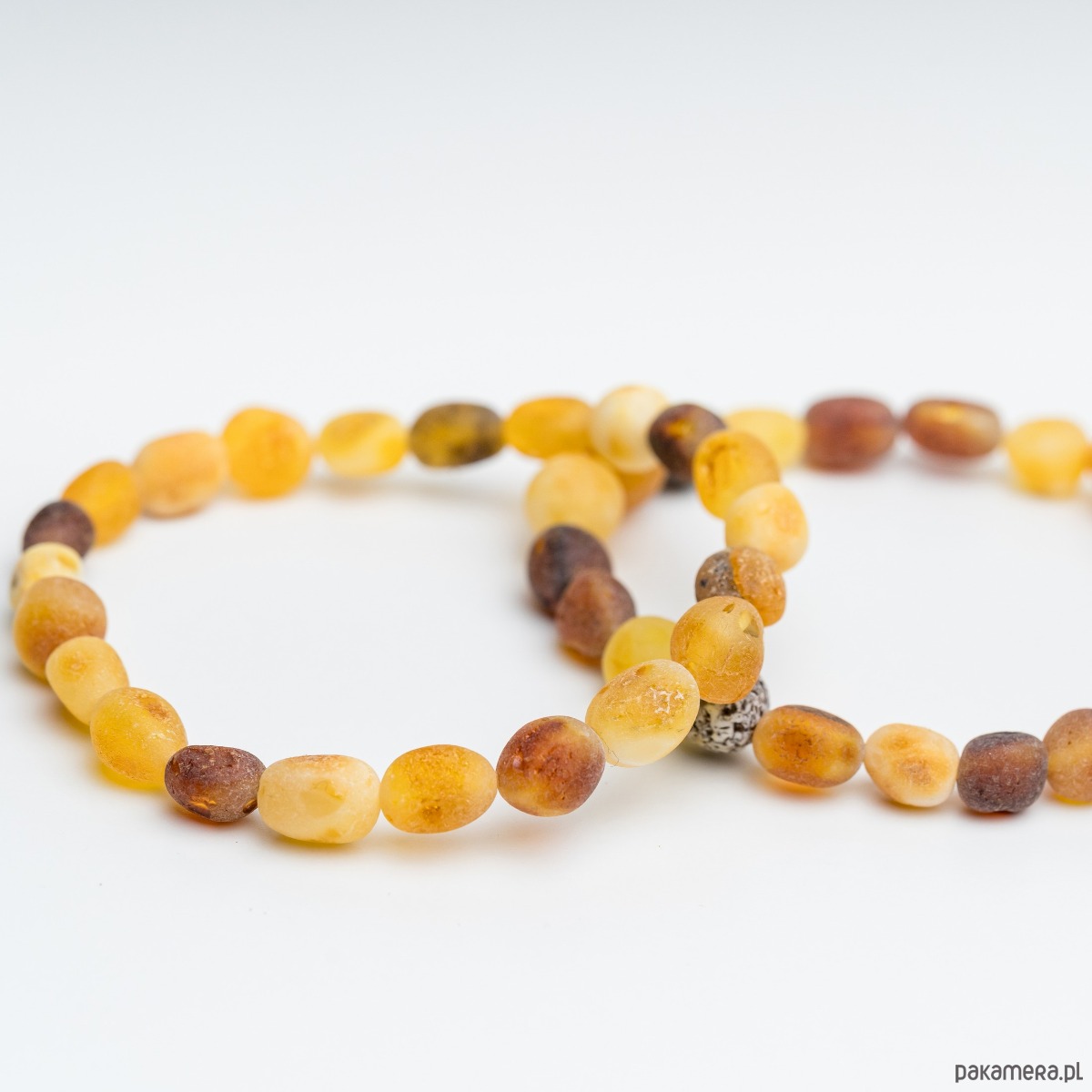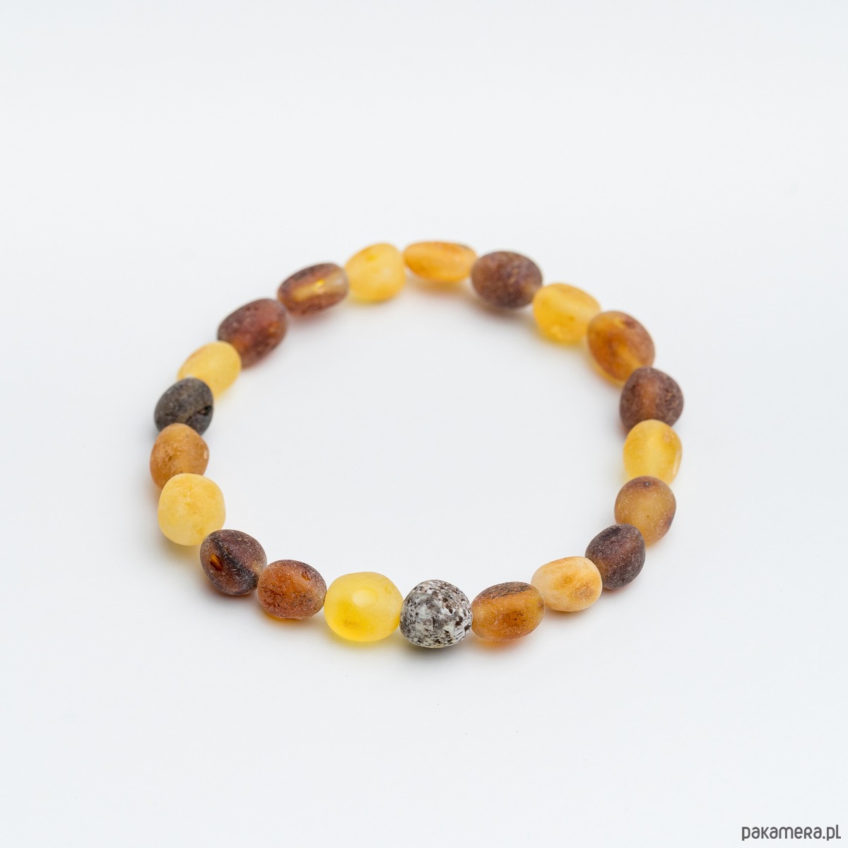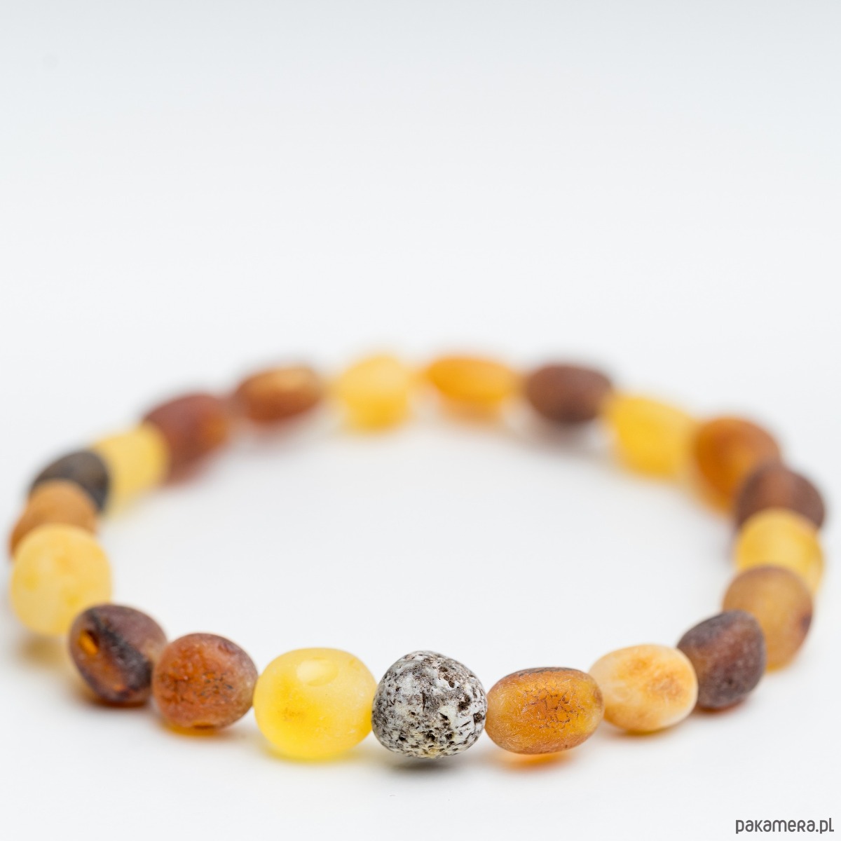 Materiały: naturalny bursztyn bałtycki, sylikonowa gumka
