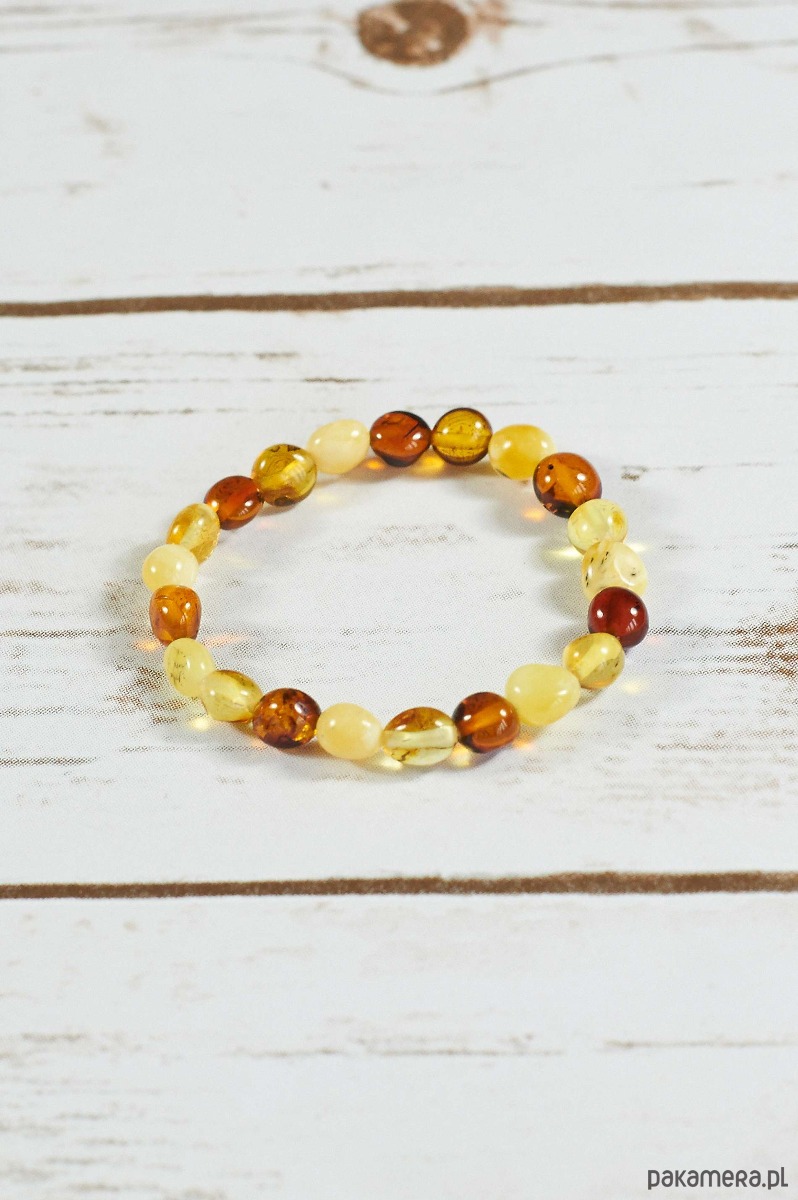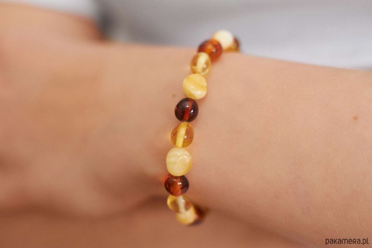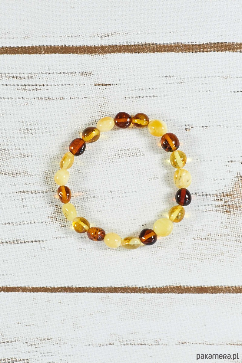 Ta ręcznie wykonana bransoletka stworzona została z naturalnych koralików z bursztynu bałtyckiego w ciepłych odcieniach koniaku i miodu. Polerwoane, oliwkowate koraliki zostały nawleczone na wytrzymałą gumkę, która dopasowuje się do każdego nadgarstka. Eleganckie połączenie wygody i naturalnej elegancji bursztynu!