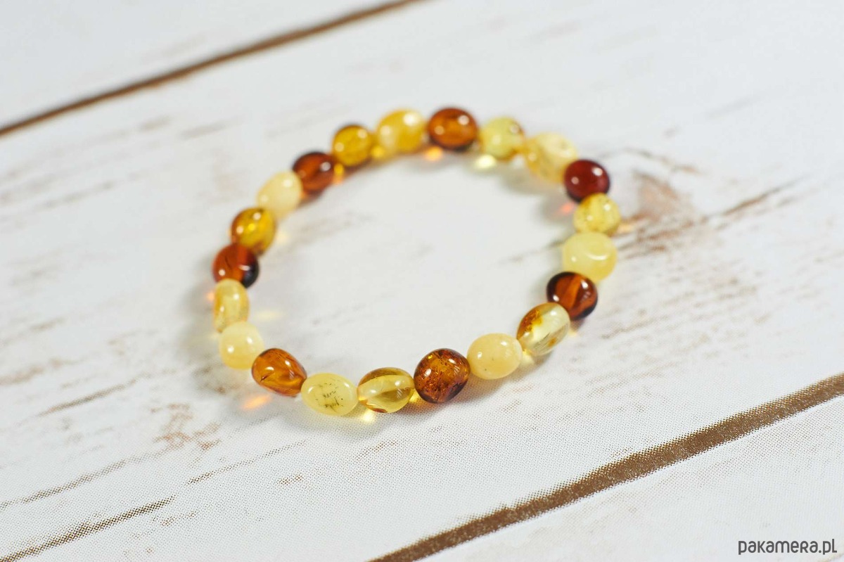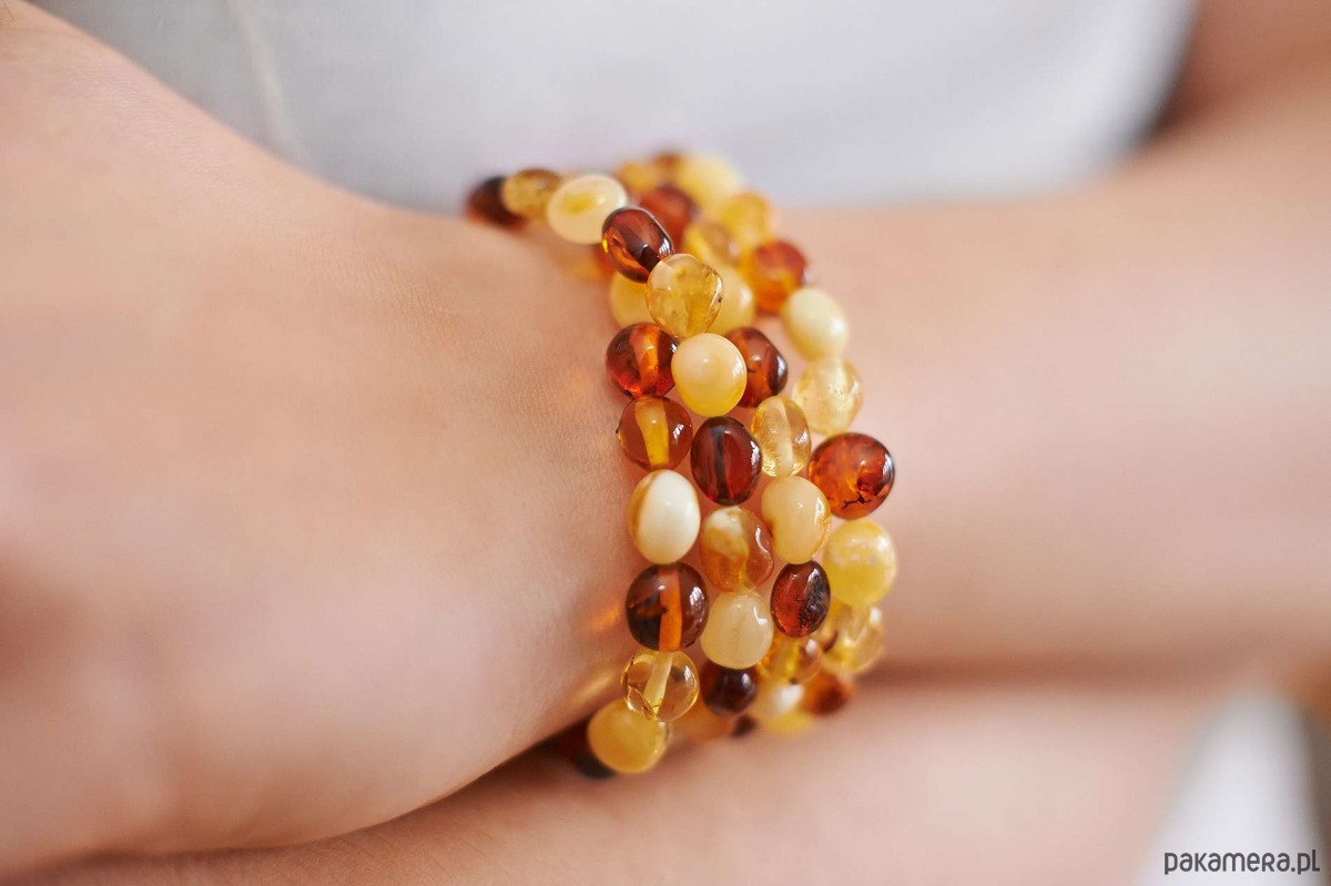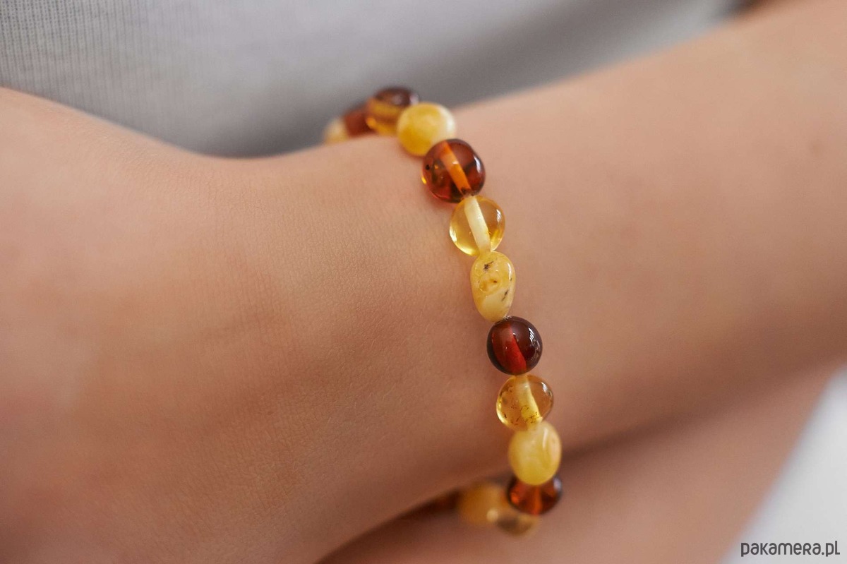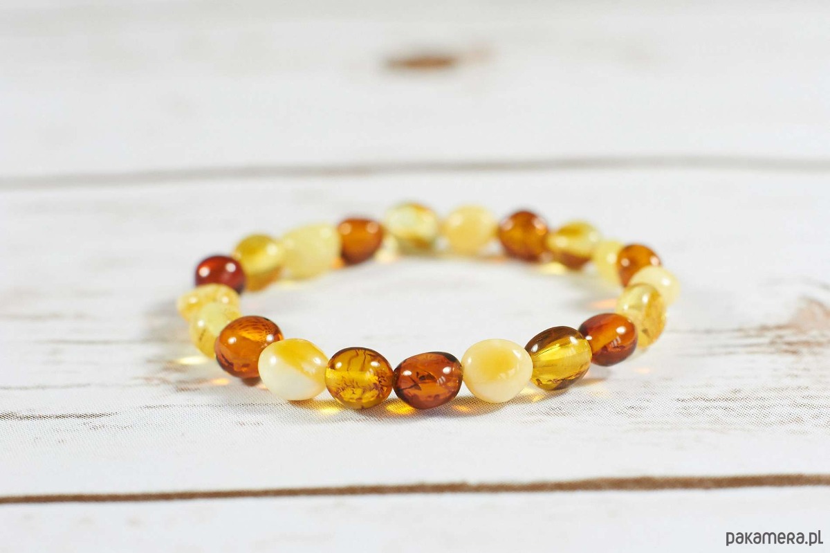 Ta ręcznie wykonana bransoletka stworzona została z naturalnych koralików z bursztynu bałtyckiego w ciepłych odcieniach koniaku i miodu. Polerwoane, oliwkowate koraliki zostały nawleczone na wytrzymałą gumkę, która dopasowuje się do każdego nadgarstka. Eleganckie połączenie wygody i naturalnej elegancji bursztynu!