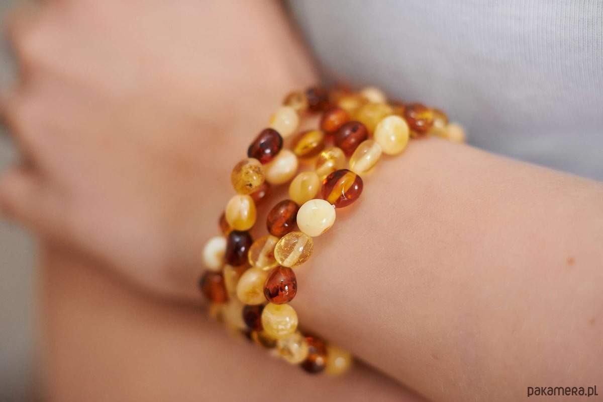 Materiały: naturalny bursztyn bałtycki, sylikonowa gumka