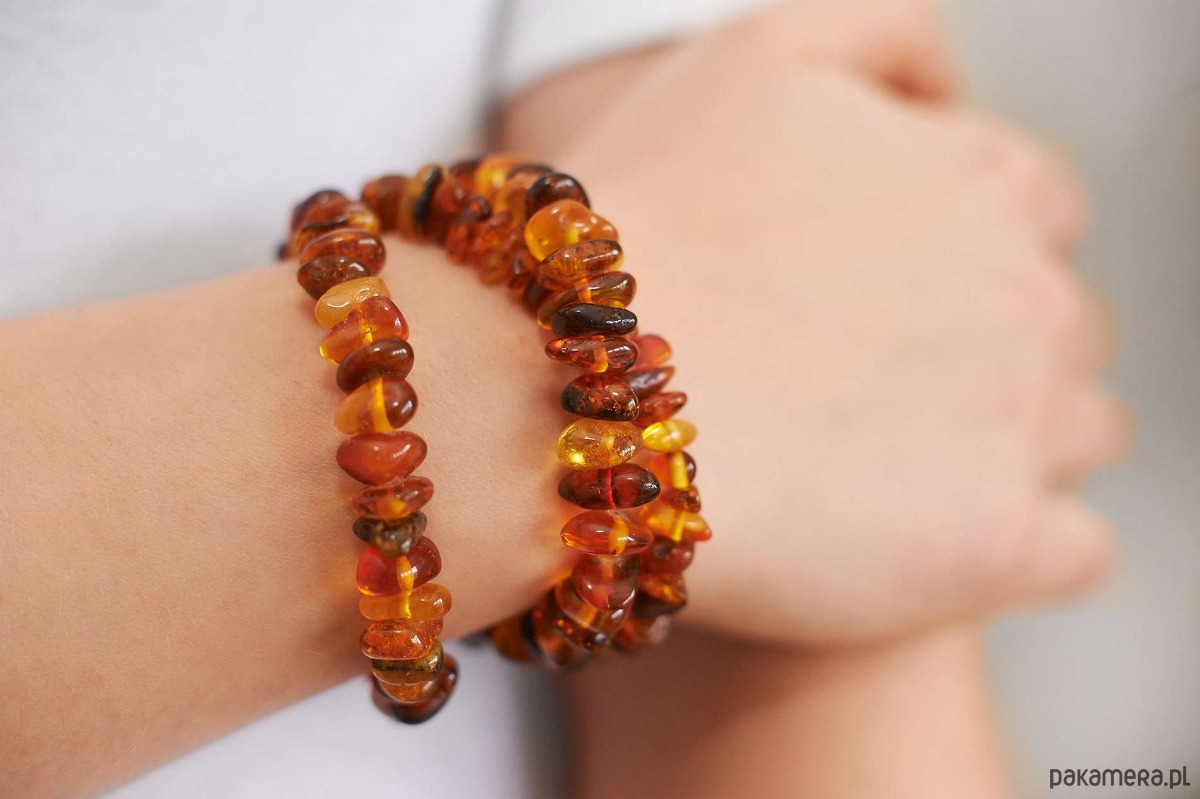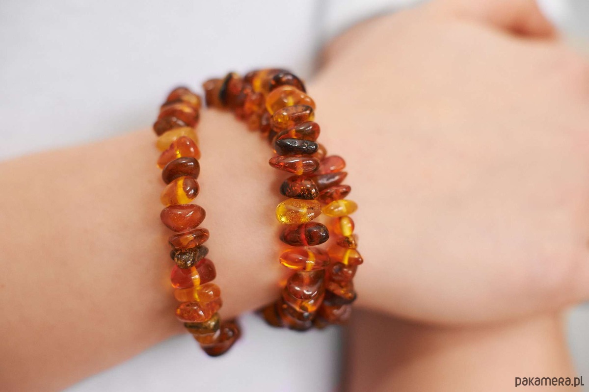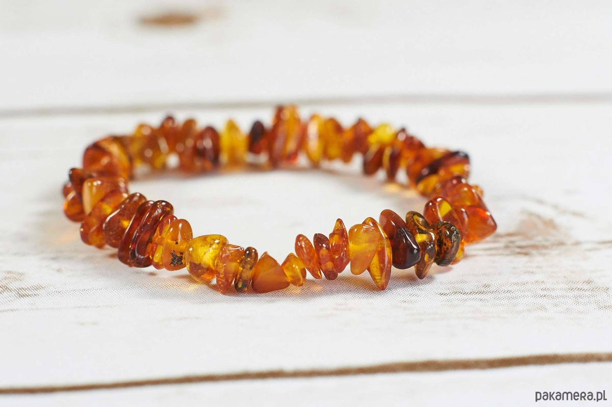 Bransoletka z bursztynu naturalnego elastyczna, sieczka bursztynowa