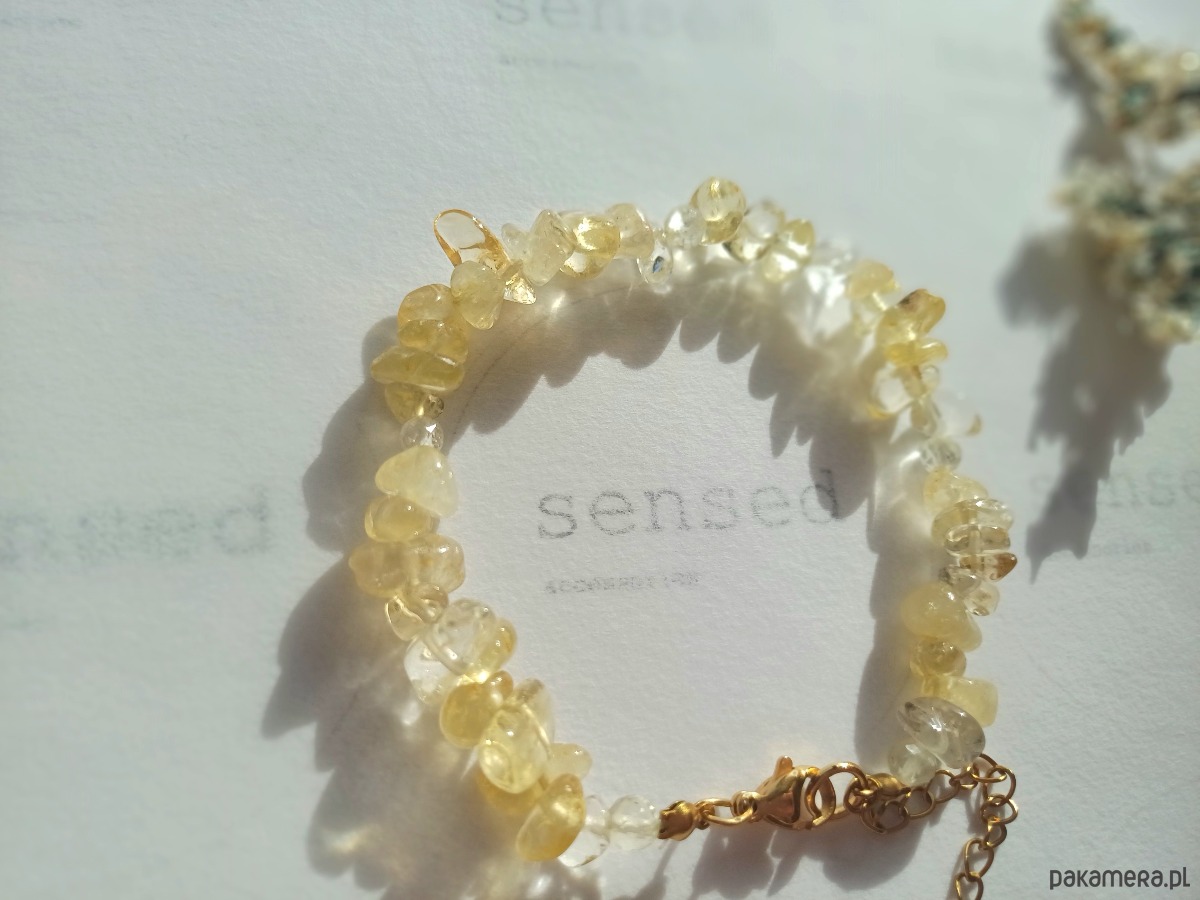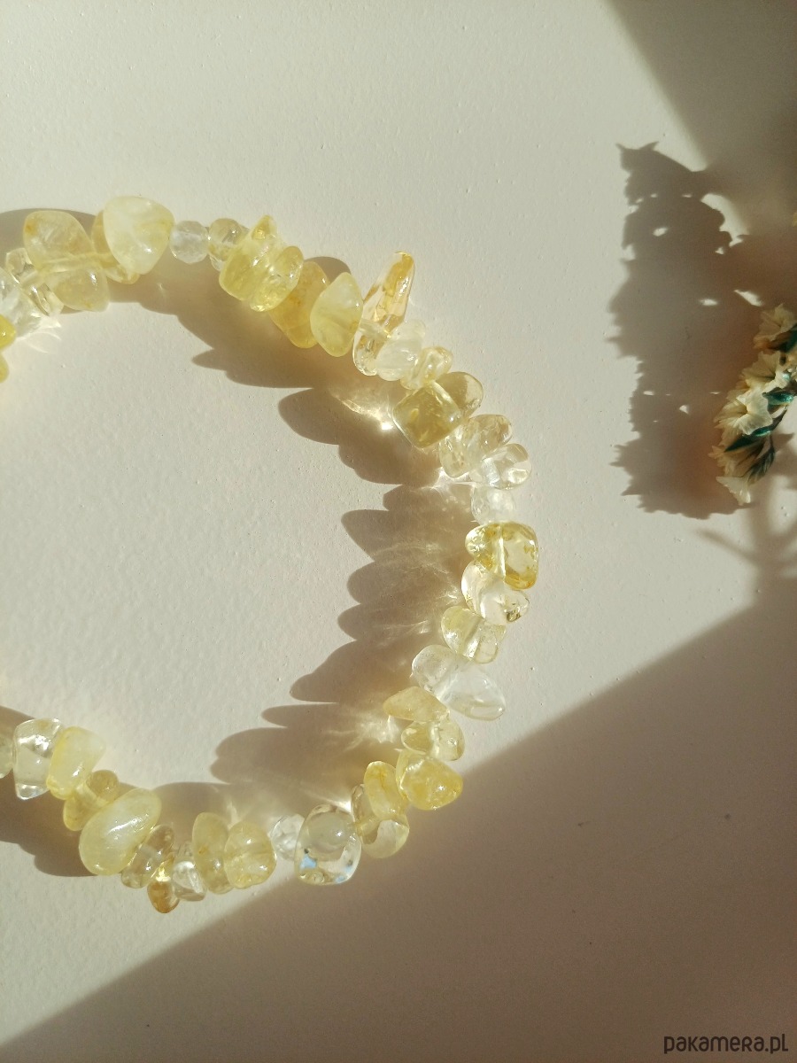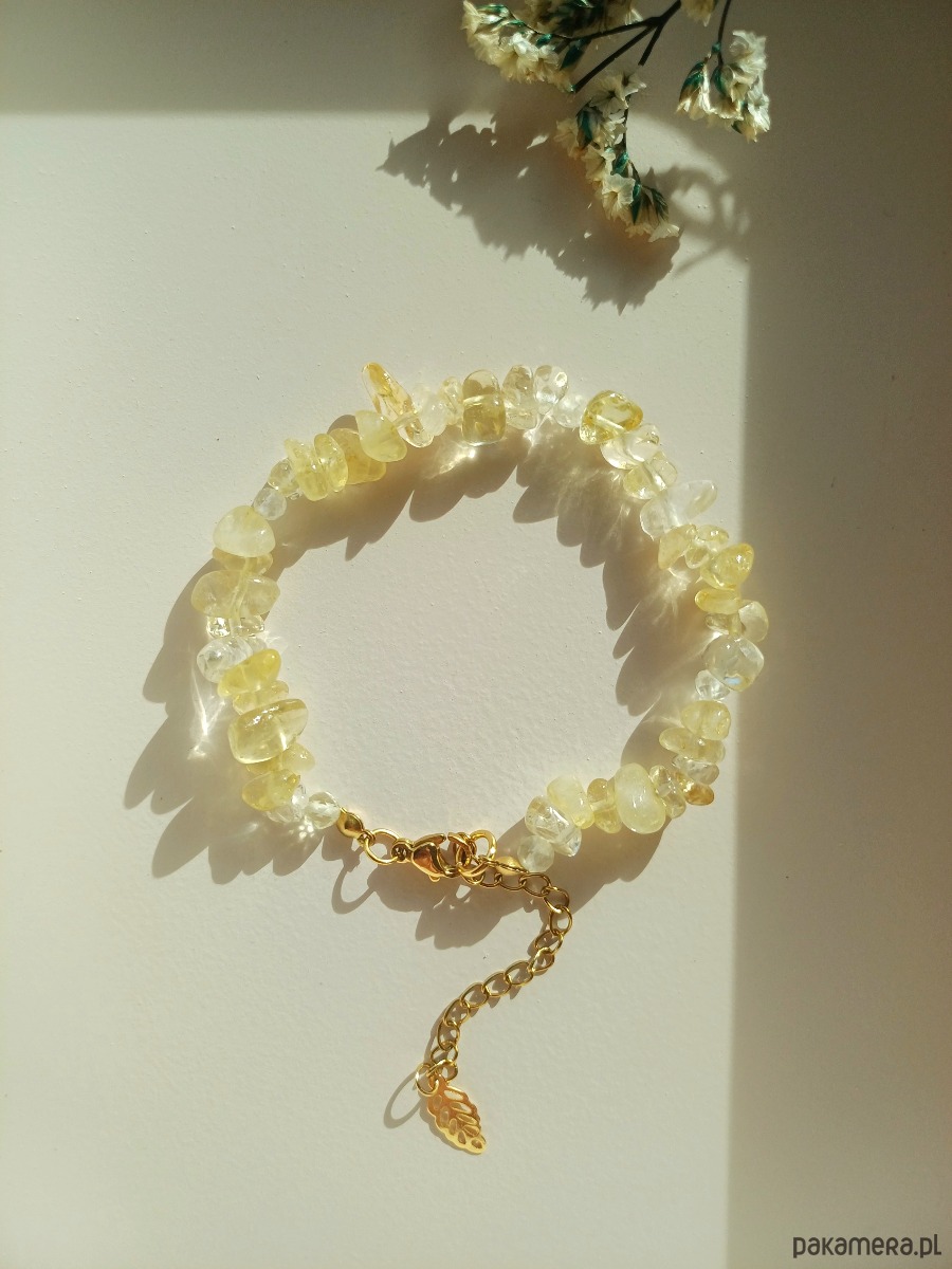 Elementy : cytryn : 4 mm, cytryn wiórki : 5 -10 mm, zapięcie: stal szlachetna