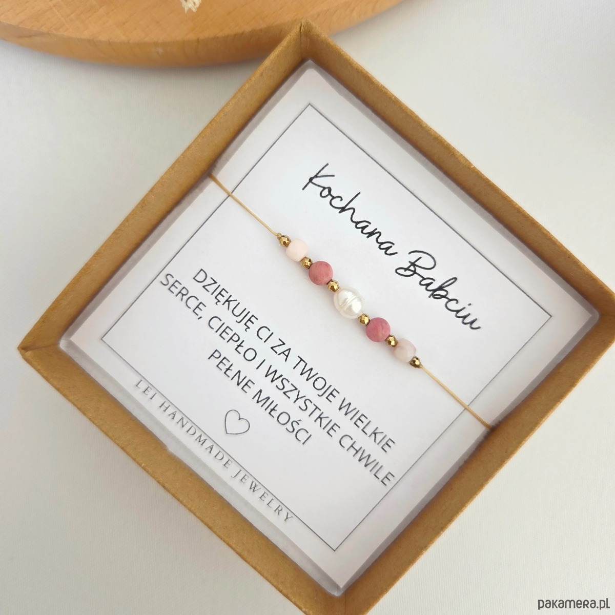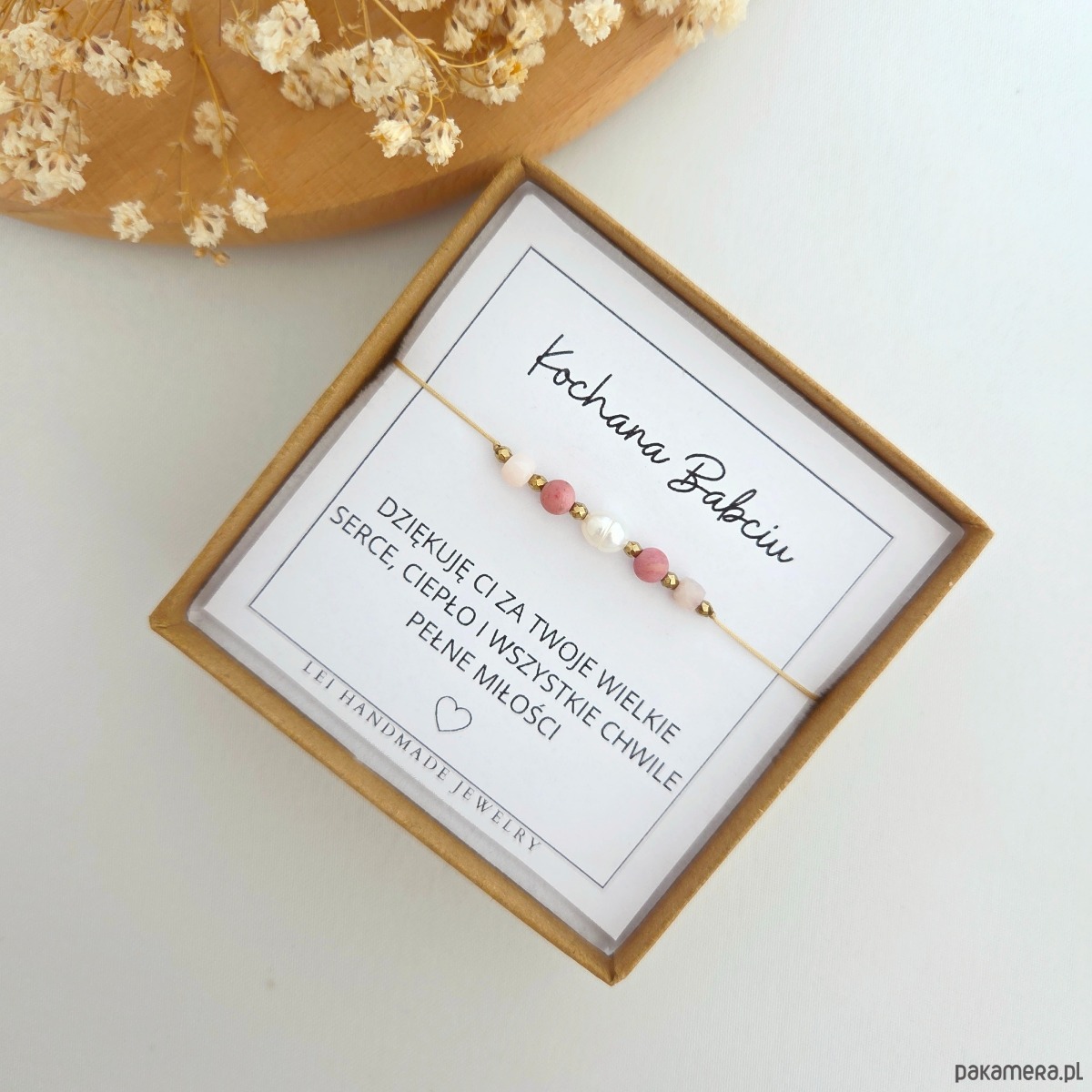 Ta ręcznie robiona bransoletka z naturalnych kamieni to piękny i symboliczny prezent na Dzień Babci, który wyrazi miłość, wdzięczność i bliskość.