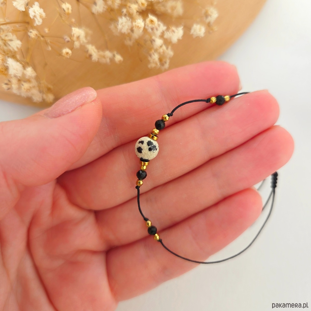 Każdy egzemplarz jest unikatowy – bransoletka może różnić się nieznacznie od tej widocznej na zdjęciu, co podkreśla jej rękodzielniczy charakter.
